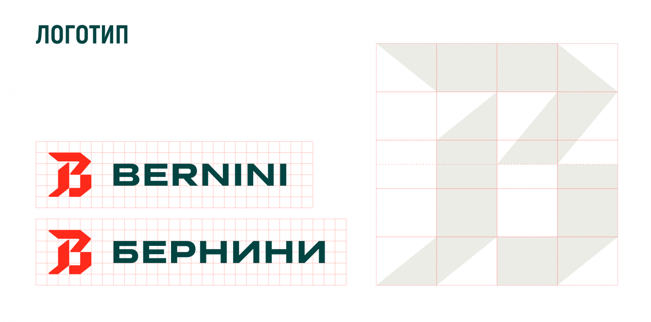 Основа фирменного знака — первая буква фамилии Бернини. Знак напоминает шрифты эпохи барокко (родоначальником которого был Бернини), а его форма образована листами металла —главным материалом, с которым работают станки.