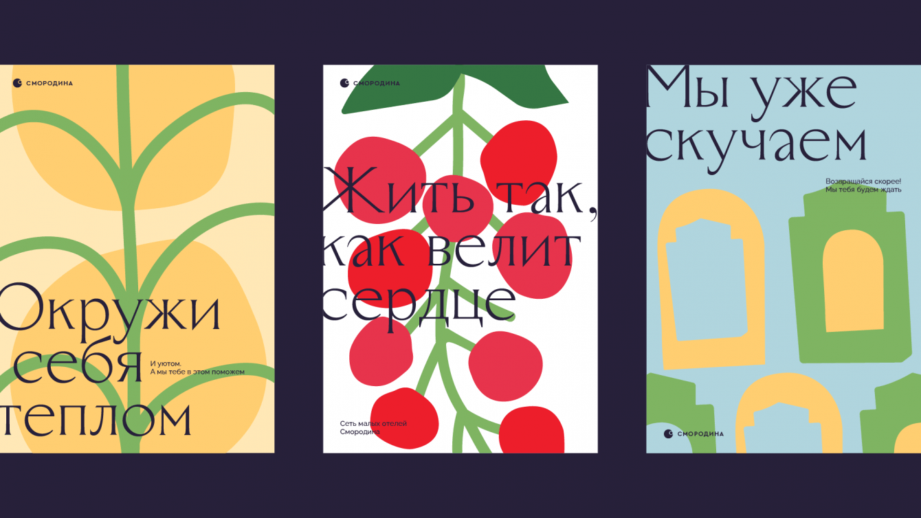Мы помогли клиенту создать платформу и идею бренда — сеть малых отелей по мировым стандартам гостеприимства «Смородина». И постарались передать атмосферу душевного и открытого русского гостеприимства. Миссия «Смородины» — создавать опыт, который хочется повторить. «Жить так, как велит сердце» — ключевая идея нового бренда.