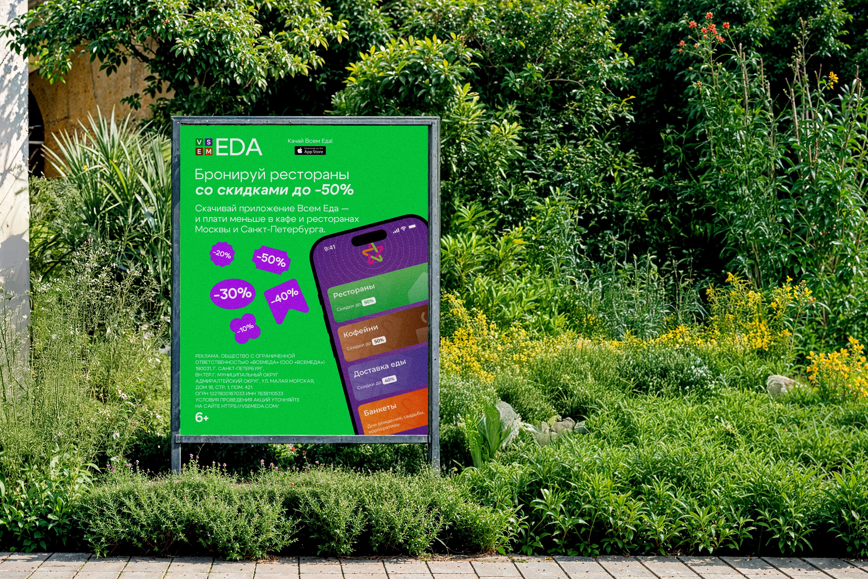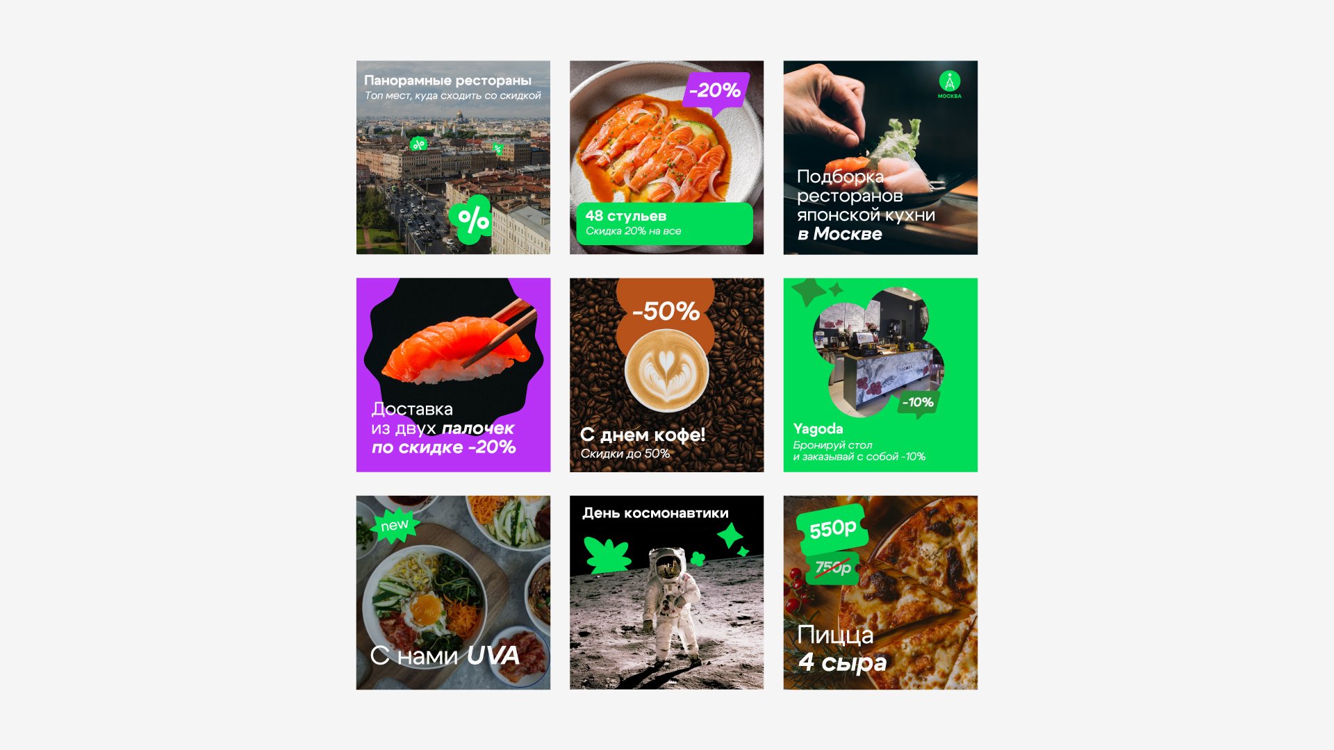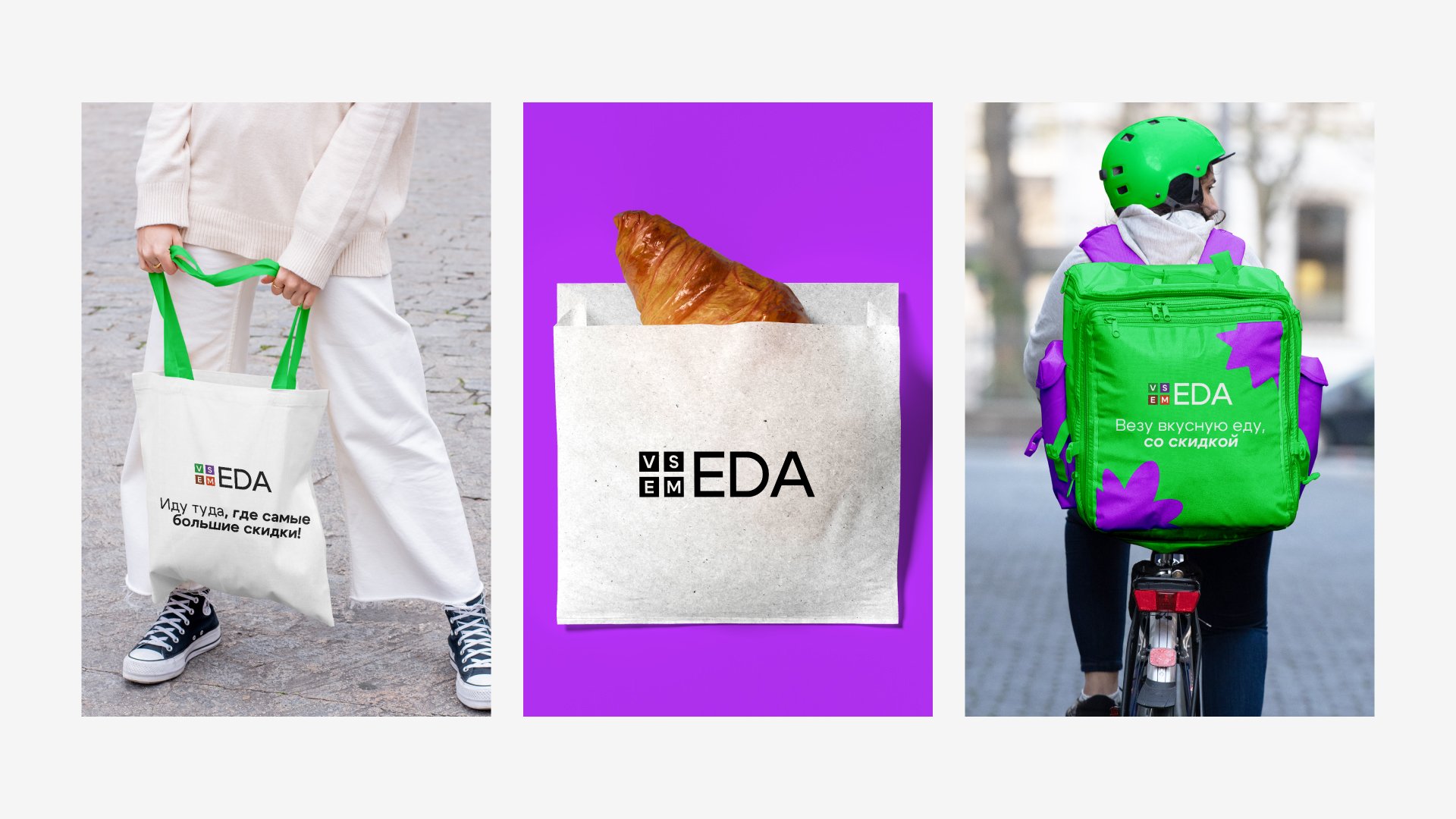 Продумали визуал так, чтобы он одинаково хорошо выглядел везде: на наружной рекламе и других носителях, например, сумках курьеров и корпоративном мерче, в соцсетях и приложении.