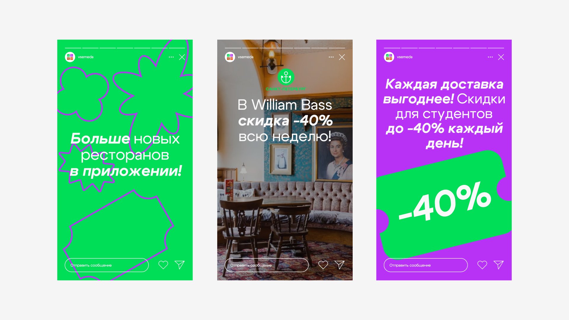 «ВсемЕда» есть в Телеграме, ВКонтакте и Инстаграме*, поэтому нам предстояло привести соцсети к общему виду.