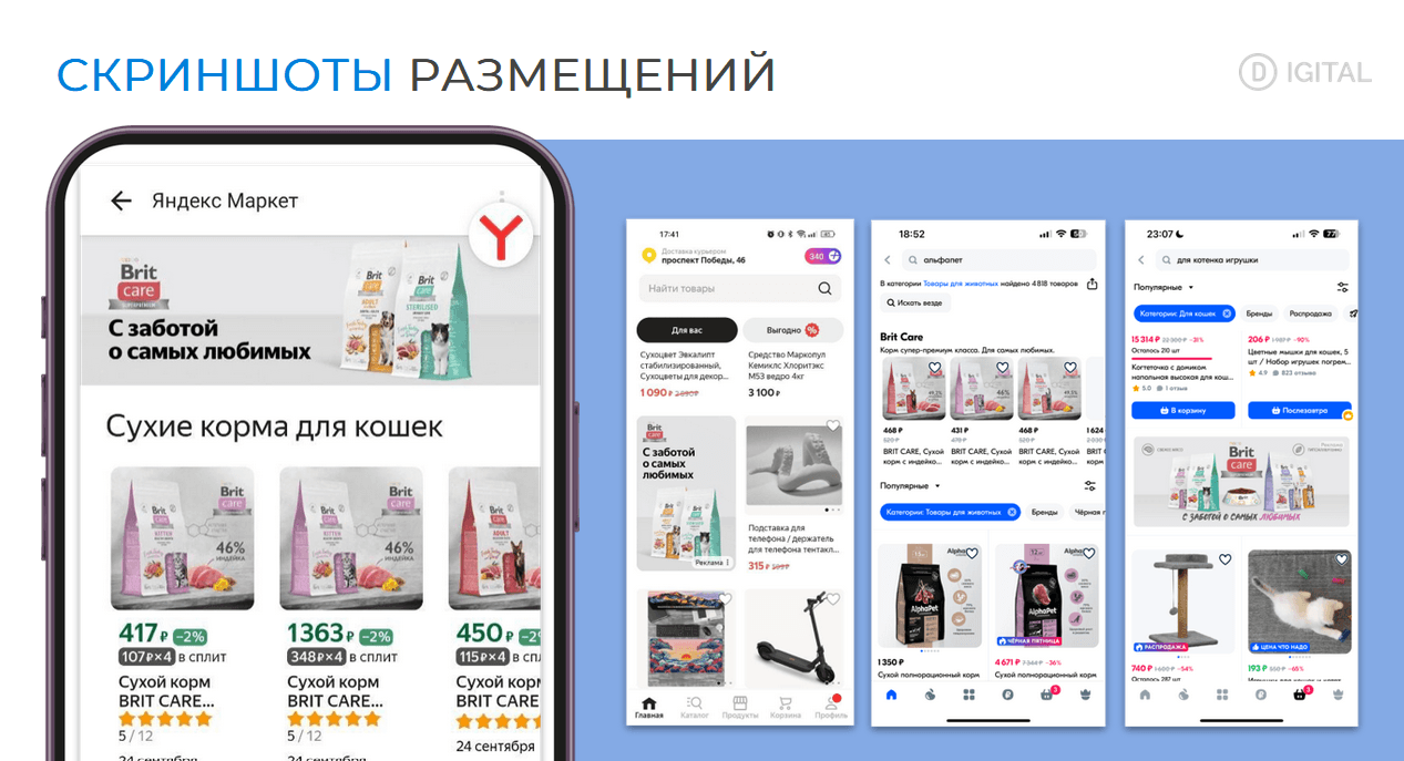 Цель заключалась в продвижении на маркетплейсах линейки кормов для кошек и собак Brit Care. Рекламная кампания была направлена на повышение узнаваемости продукта и стимулирование продаж среди целевой аудитории.