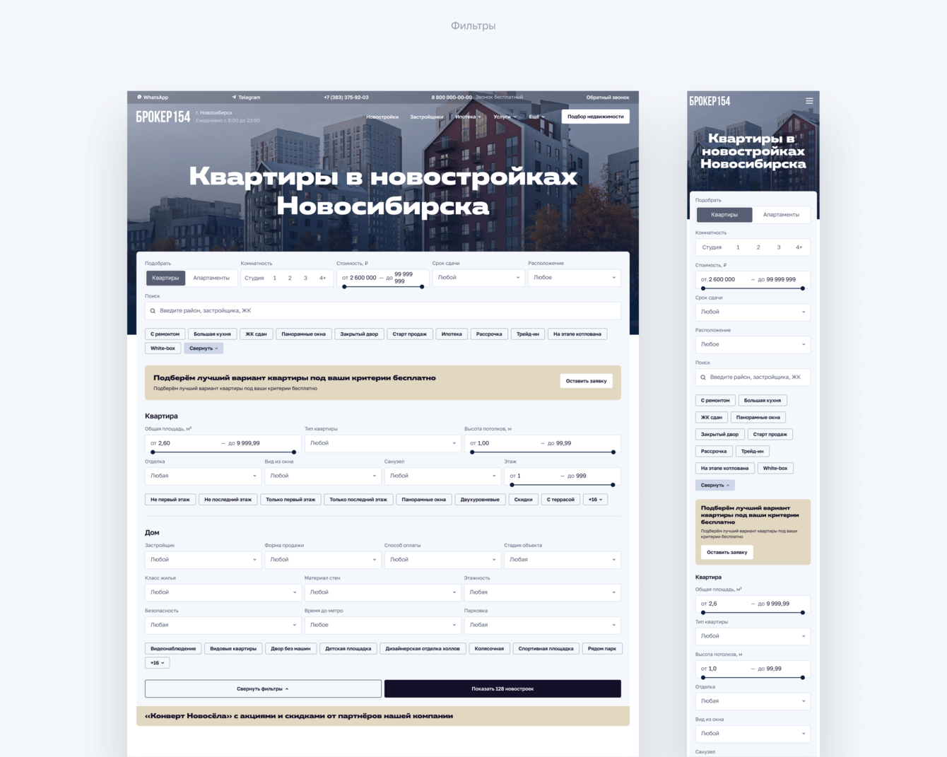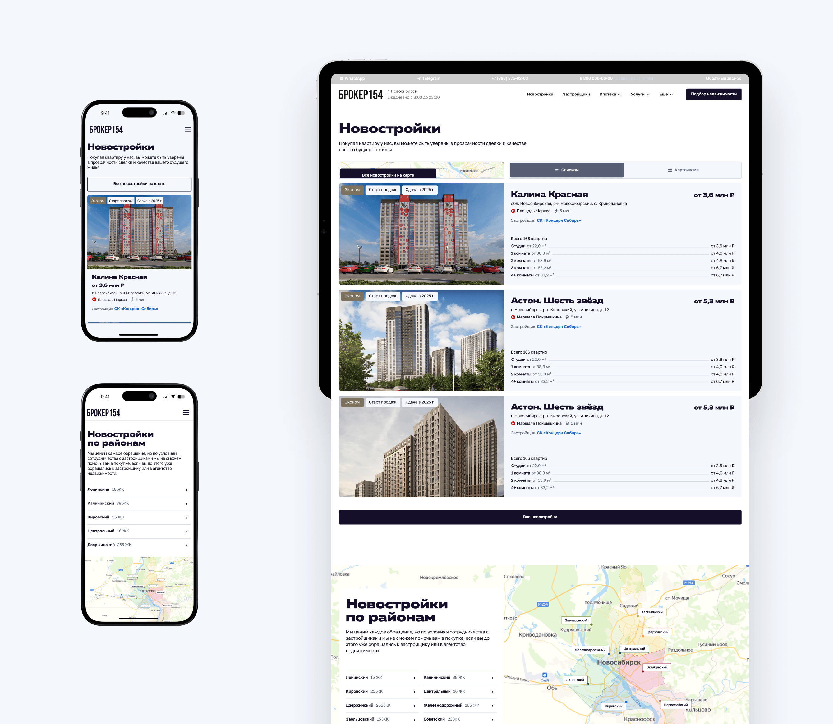 Брокер 154 – агентство недвижимости из Новосибирска, специализирующееся на продаже квартир только в новостройках в рамках одного региона.