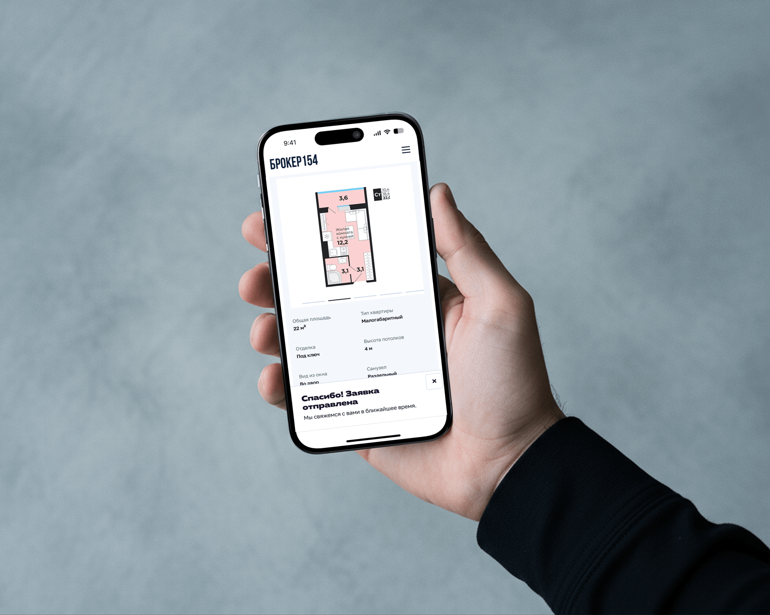 На сайте была сделана базовая конверсионная механика: единая форма заявки (имя + телефон), которая используется из разных точек сайта и отправляет заявки в CRM клиента. Это выглядит не так внушительно на фоне каталога, но для продукта важно, это даёт пользователю понятный следующий шаг.