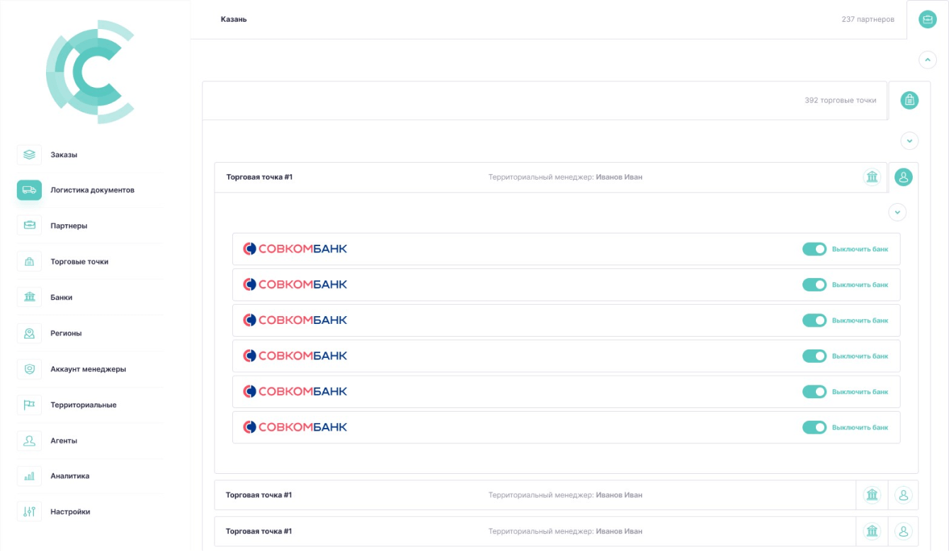 Система позволяла по заданным критериям находить варианты кредитования от различных банков, следить за текущими сделками, партнерами, вести аналитику по заказам, банкам, менеджерам.