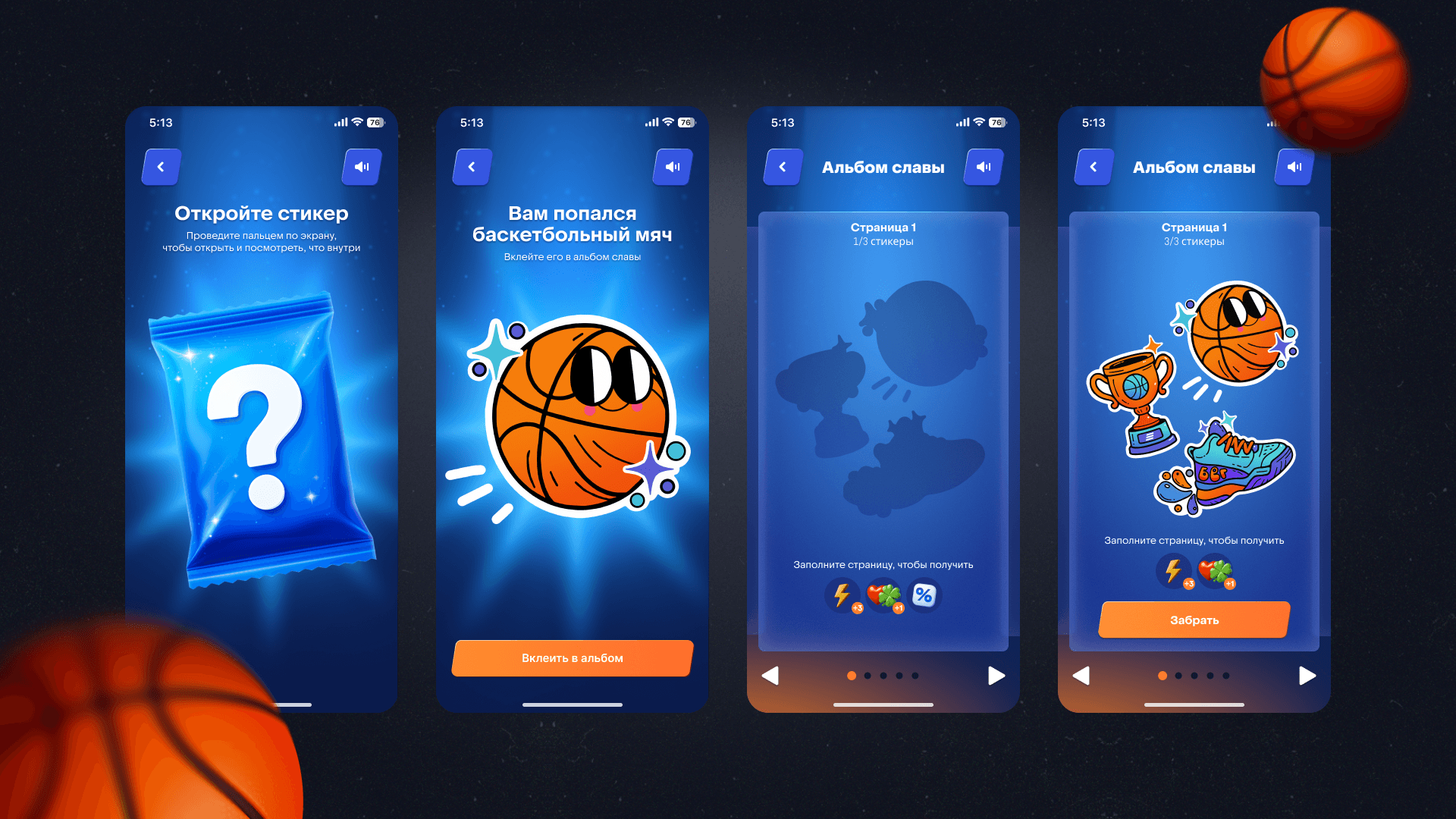 За каждые 5 чистых бросков, в которых клиент одержал победу, он получал случайный стикер и тем самым собирал свою коллекцию в «Альбоме славы». Когда игрок полностью заполнял одну из страниц Альбома, он получал ценный подарок от Банка.