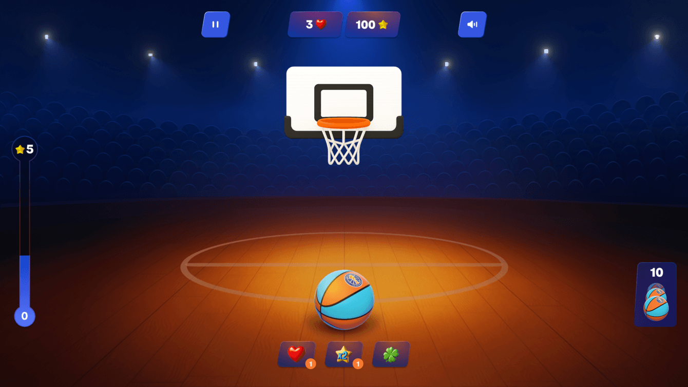 1. «Мастер мяча»: Классический аркадно-реактивный геймплей, где нужно было забросить 10 мячей в корзину, используя механику свайпа.