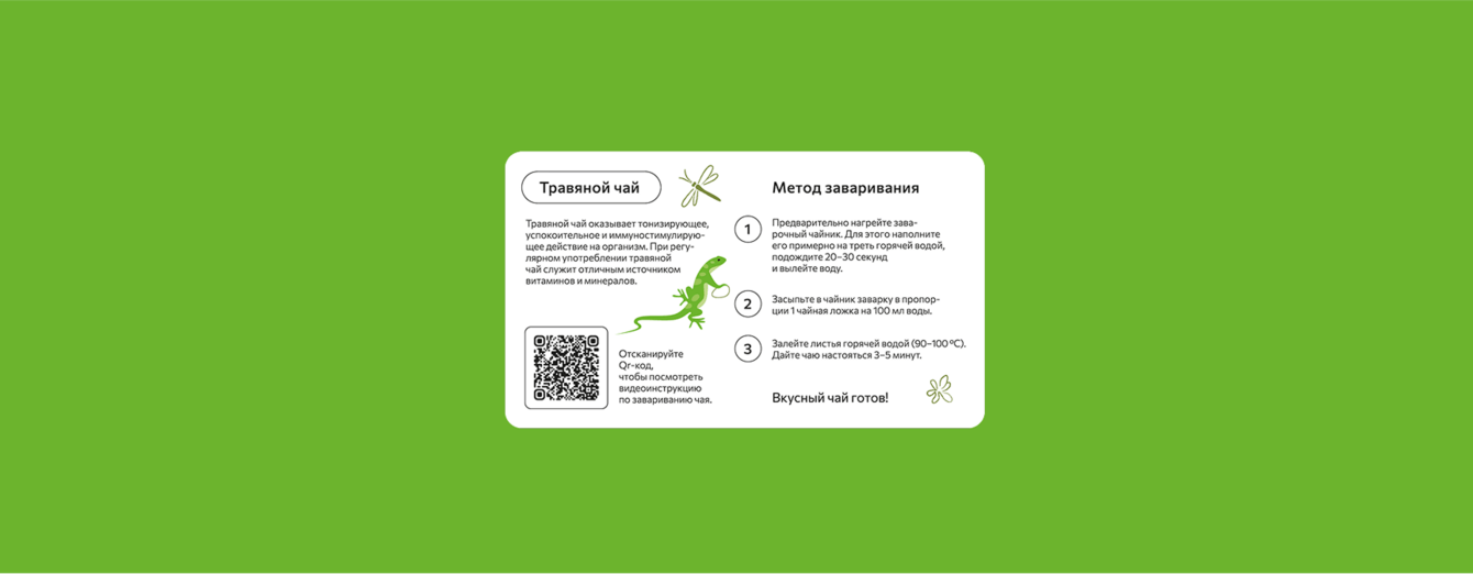 Каждый макет построен по единой структуре: в центральной верхней части размещается логотип, а внизу находится этикетка с информацией о конкретном виде чая.
