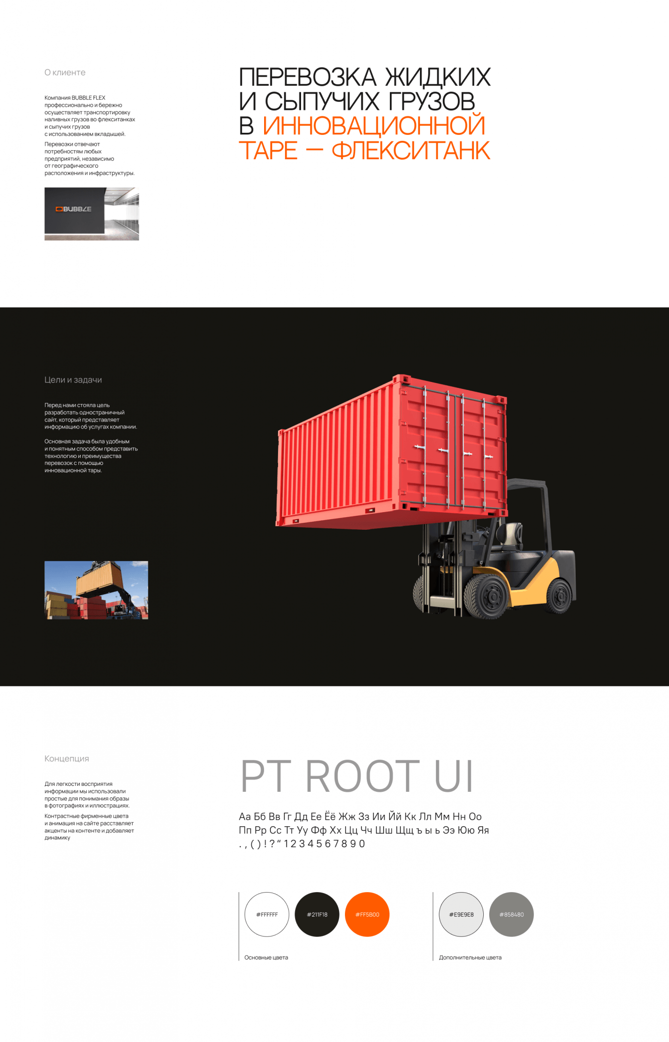 Основная задача была удобным и понятным способом представить технологию и преимущества перевозок с помощью инновационной тары.