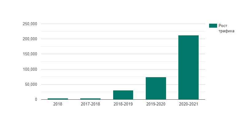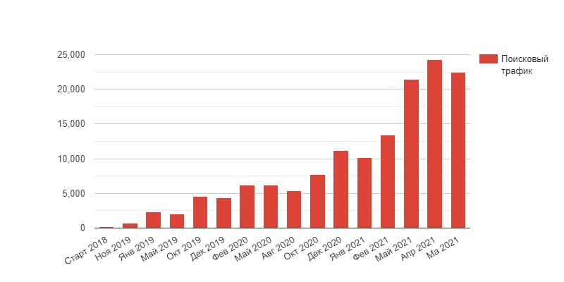 Через 12 месяцев трафик был 1782 переходов в месяц, а через 24 месяца уже 6 102 переходов в меся