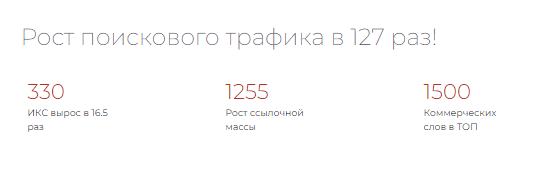Рост ИКС (индекс качества сайта) 16,5 раз с 20 до 330 баллов. Это больше, чем у основных конкурентов