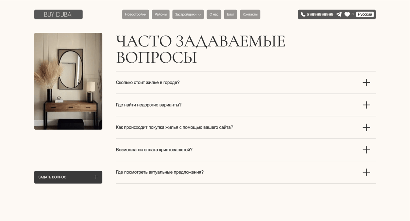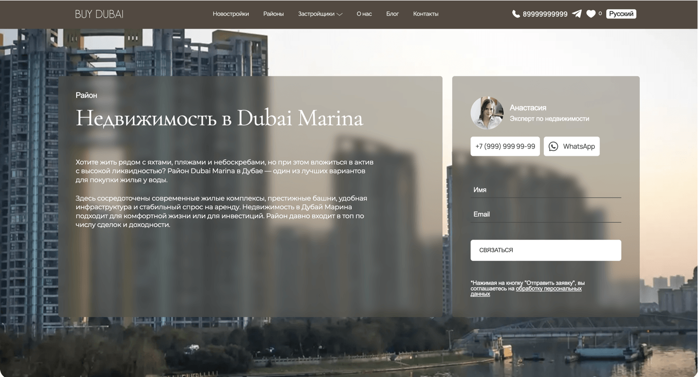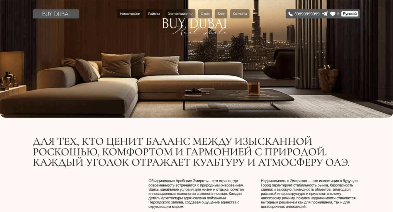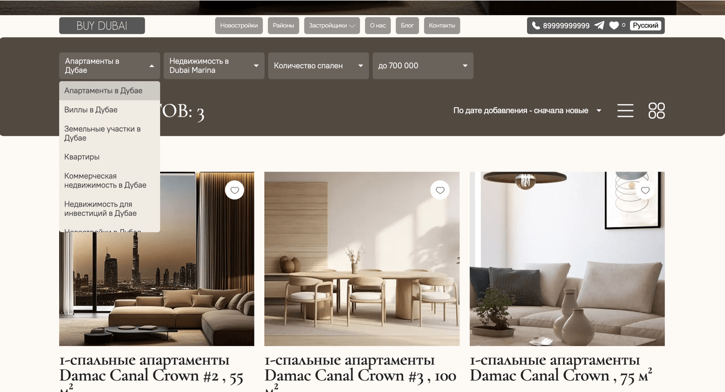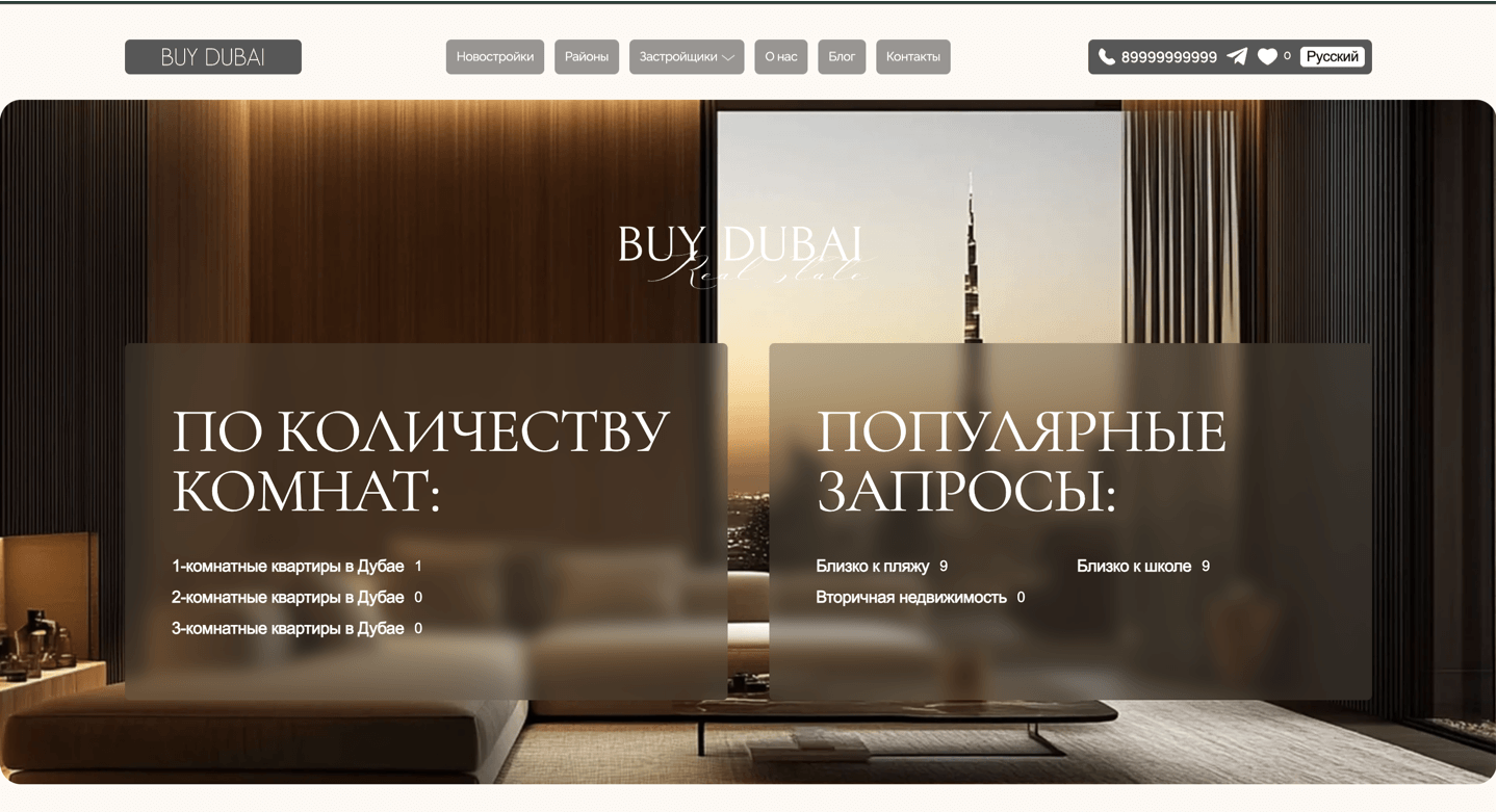Создать под ключ цифровой продукт премиального уровня - сайт каталога недвижимости в Дубае, который: