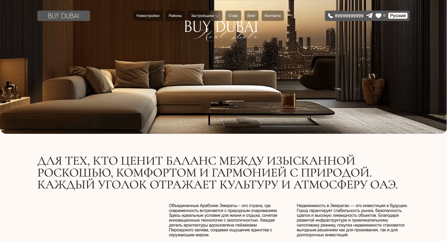 Мы изучили сайты топ-игроков рынка ОАЭ (Bayut, Property Finder) и сформировали стандарт качества, который должен превзойти конкурентов.