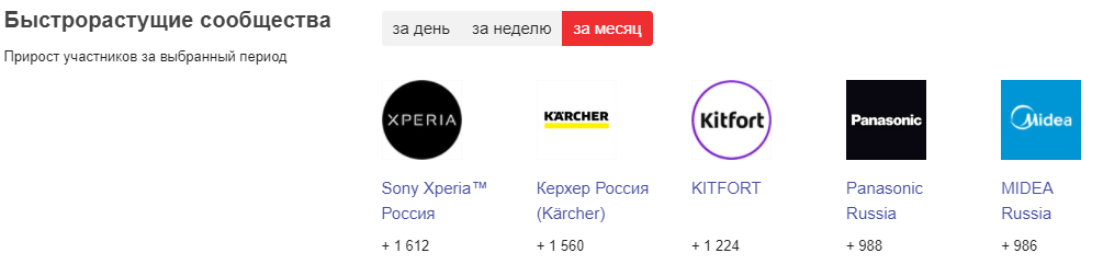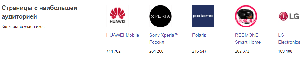 Для анализа были отобраны 5 брендов с активными страницами в социальных сетях и 5 аккаунтов быстрорастущих компаний.