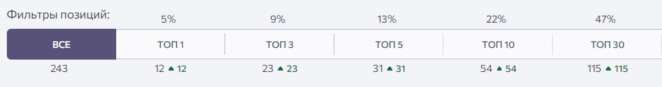 - Вывели в ТОП-10 более 22% запросов, т. е. увеличение в 7 раз.
