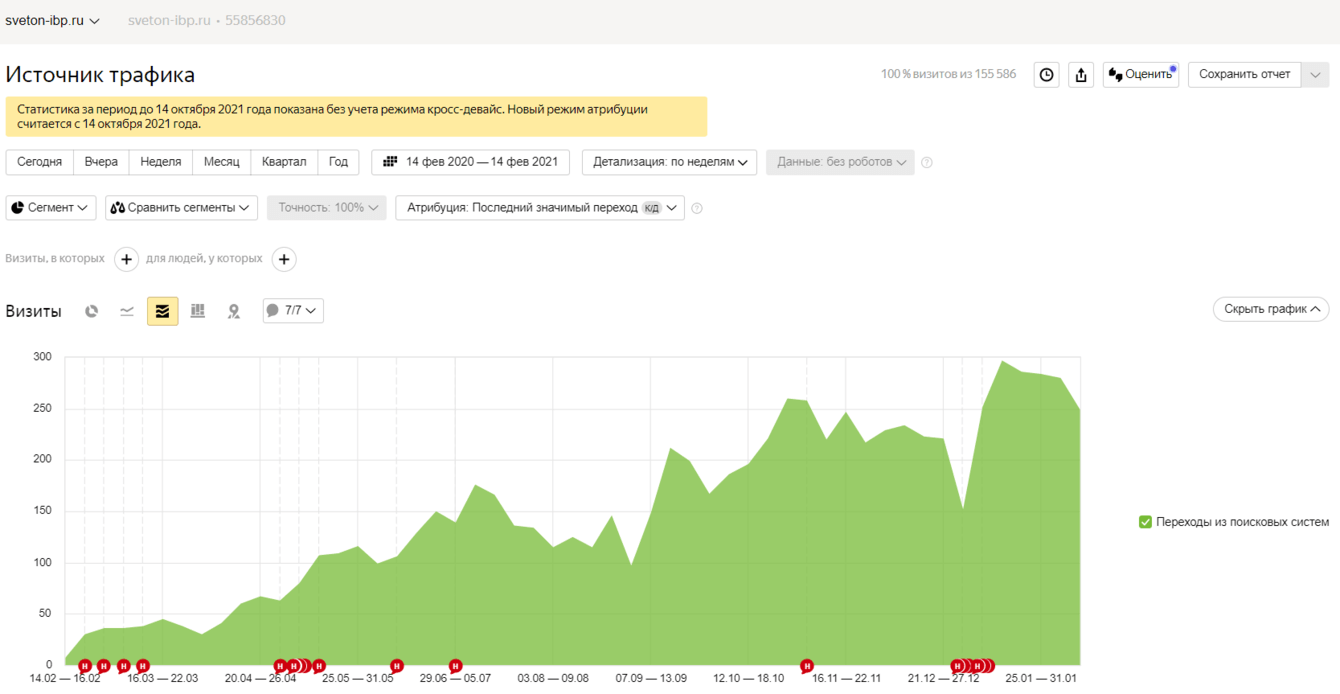 График количества переходов из поисковых систем с начала работ и в конце периода: