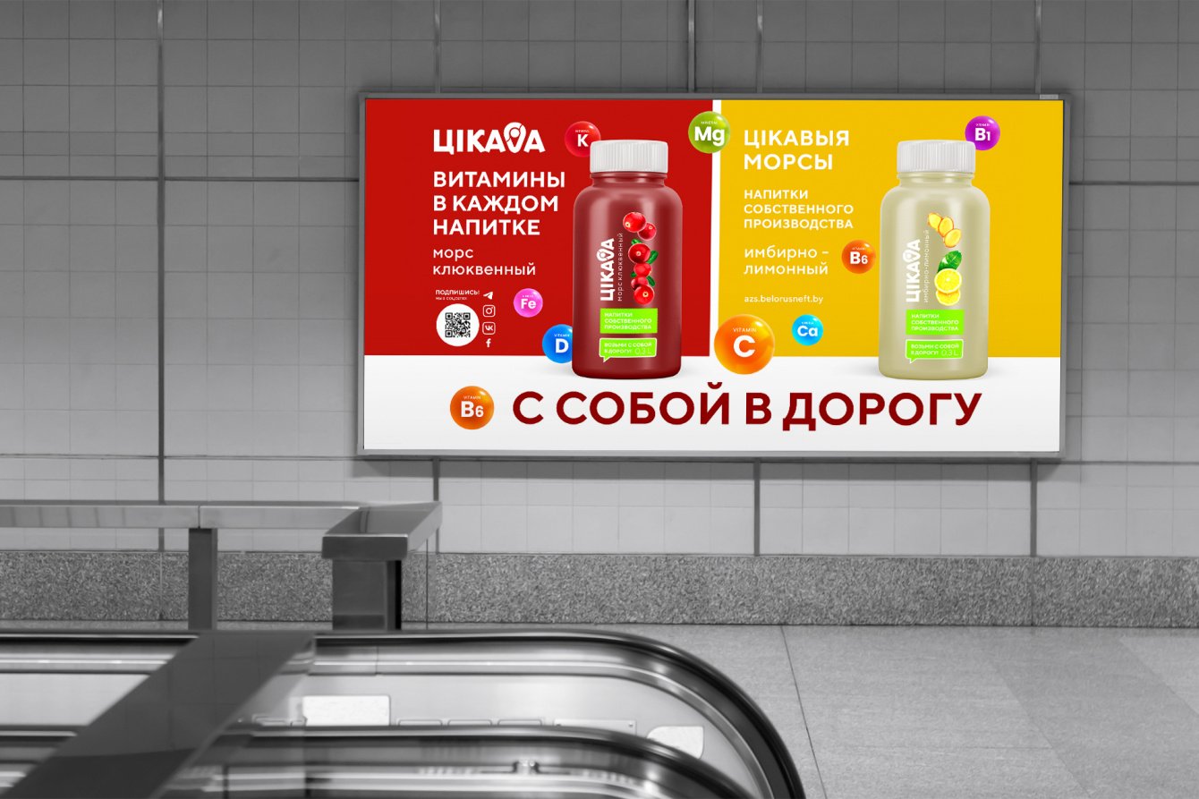 Для морсов СТМ крупной белорусской компании была разработана этикетка, а также рекламные носители. Яркие бутылки напитков собственного производства снабжены этикеткой (прозрачная самоклеящийся пленка) с красочным сочным принтом.
