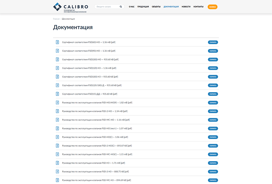 В главное меню сайта добавили информацию, которая важна для клиентов компании. Добавили технические документы и сертификаты. Это повышает доверие и лояльность к организации.