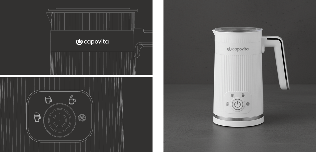 CAPOVITA — зонтичное имя для экосистемы, под которым легко растут линейки. Внутри системы появились понятные имена устройств и аксессуаров: кофемашины Capovita Art, Capovita Phantom, Capovita Phantom Pro и портативная Capovita GO, вспениватели ALBA и BRUMA. Когда названия не притворяются поэзией, а честно работают навигацией, жить становится проще всем — и бренду тоже.
