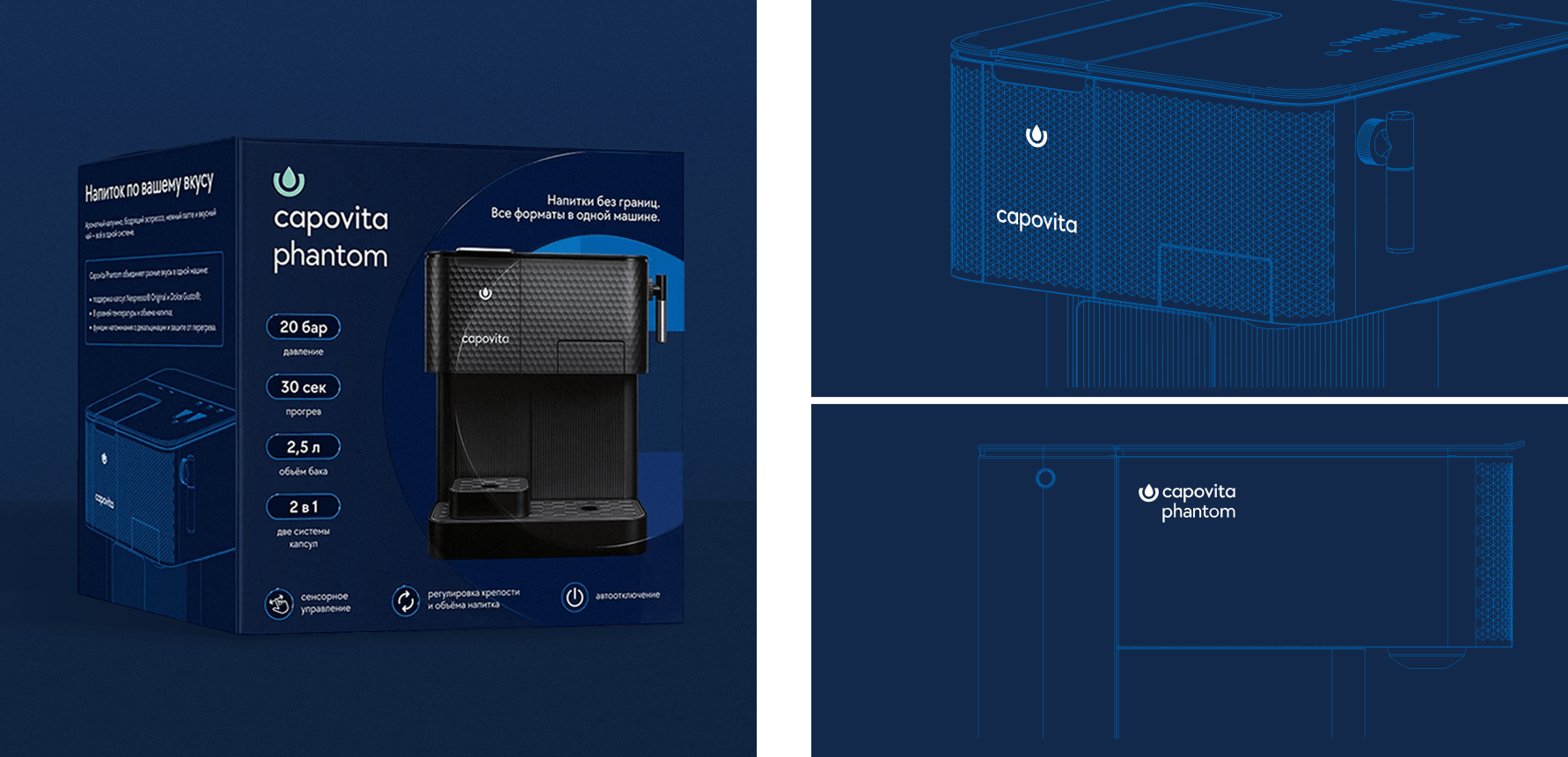 Дальше — дисциплина, без которой маркетплейсы быстро превращаются в квест. Мы подготовили правила и макеты для брендирования техники, упаковок, инструкций и логистики, чтобы CAPOVITA одинаково собранно выглядела и на коробке кофемашины, и на транспортной наклейке. И да, мы официально запретили «креативные» градиенты в логотипе — не потому что мы зануды, а потому что узнаваемость дороже минутного вдохновения.