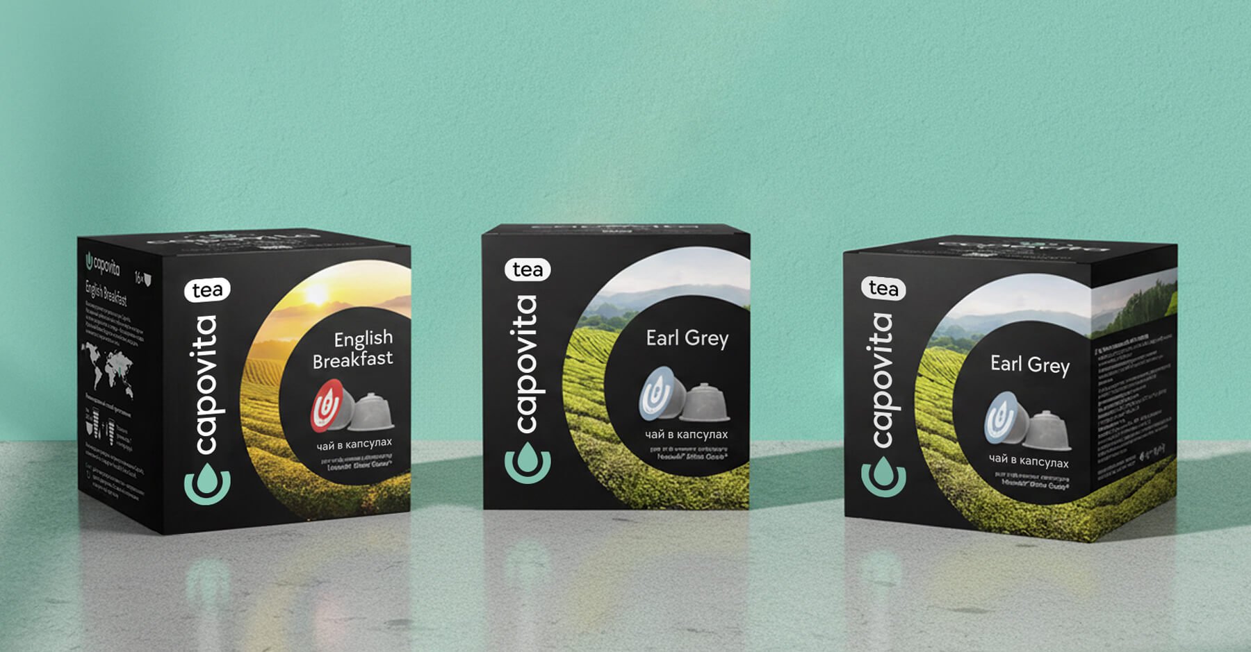 В капсулах главное — не «красота ради красоты», а понятность выбора. Поэтому упаковка стала навигацией: разные форматы (в том числе совместимость с Nespresso и Dolce Gusto) живут в одной системе, а линейка расширяется без ощущения, что каждый раз запускали новый бренд. Отдельно проработали чай в капсулах Dolce Gusto — как тест на прочность для экосистемы: если чай выглядит «своим», значит система правда работает.
