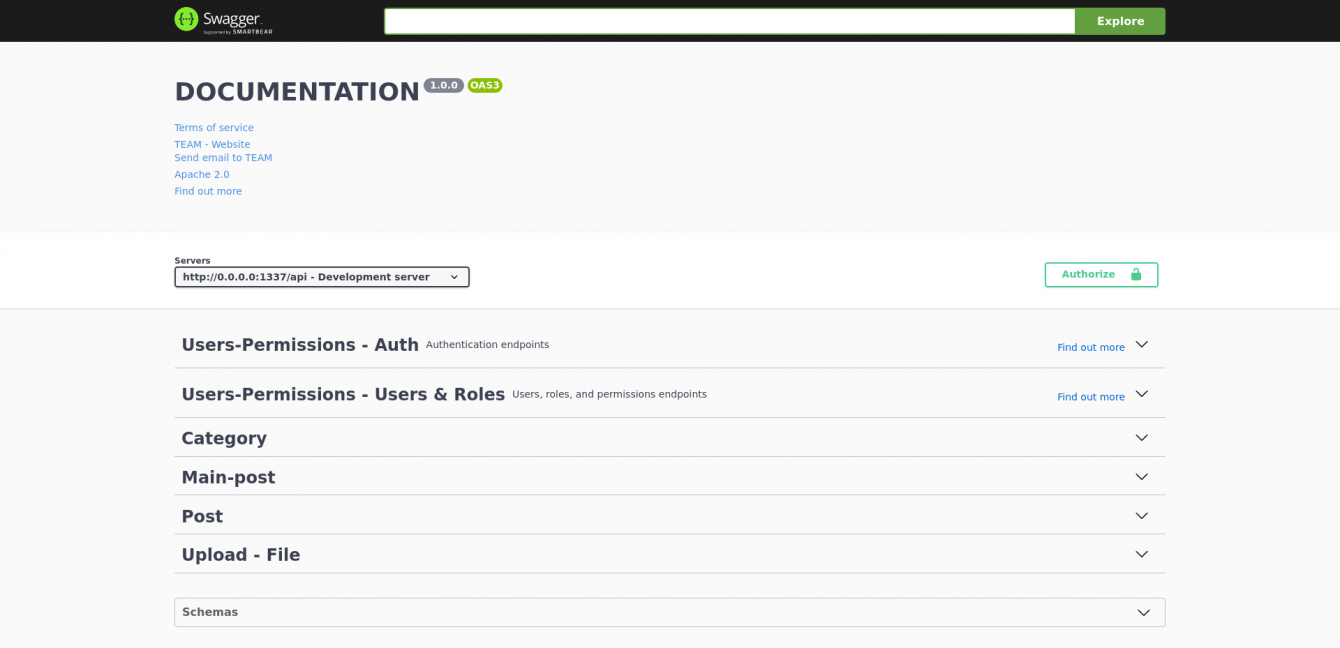 Помимо GUI для управления контентом Strapi предоставил полноценный API для получения записей, которым пользовался front-end и другие сервисы CarCraft. Документация автоматически генерировалась в Swagger при помощи бесплатного плагина из магазина плагинов.