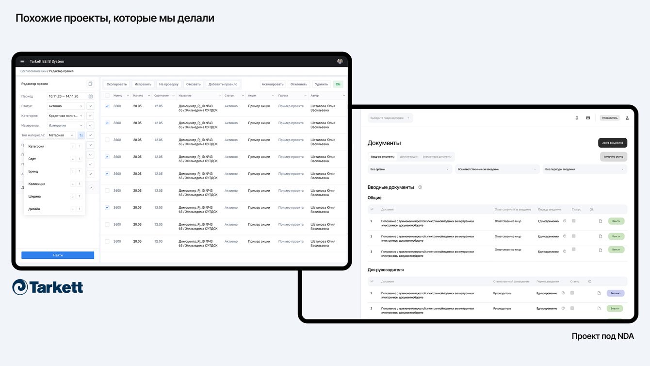 Аналитику CRM-системы мы строили на основе экспертизы заказчика и нашего опыта в разработке похожих систем (Мы делали ERP для Tarkett и CRM для врачей). Поэтому уже знали, что ключевое в дизайне таких интерфейсов — это быстрый поиск информации и простота работы с данными.