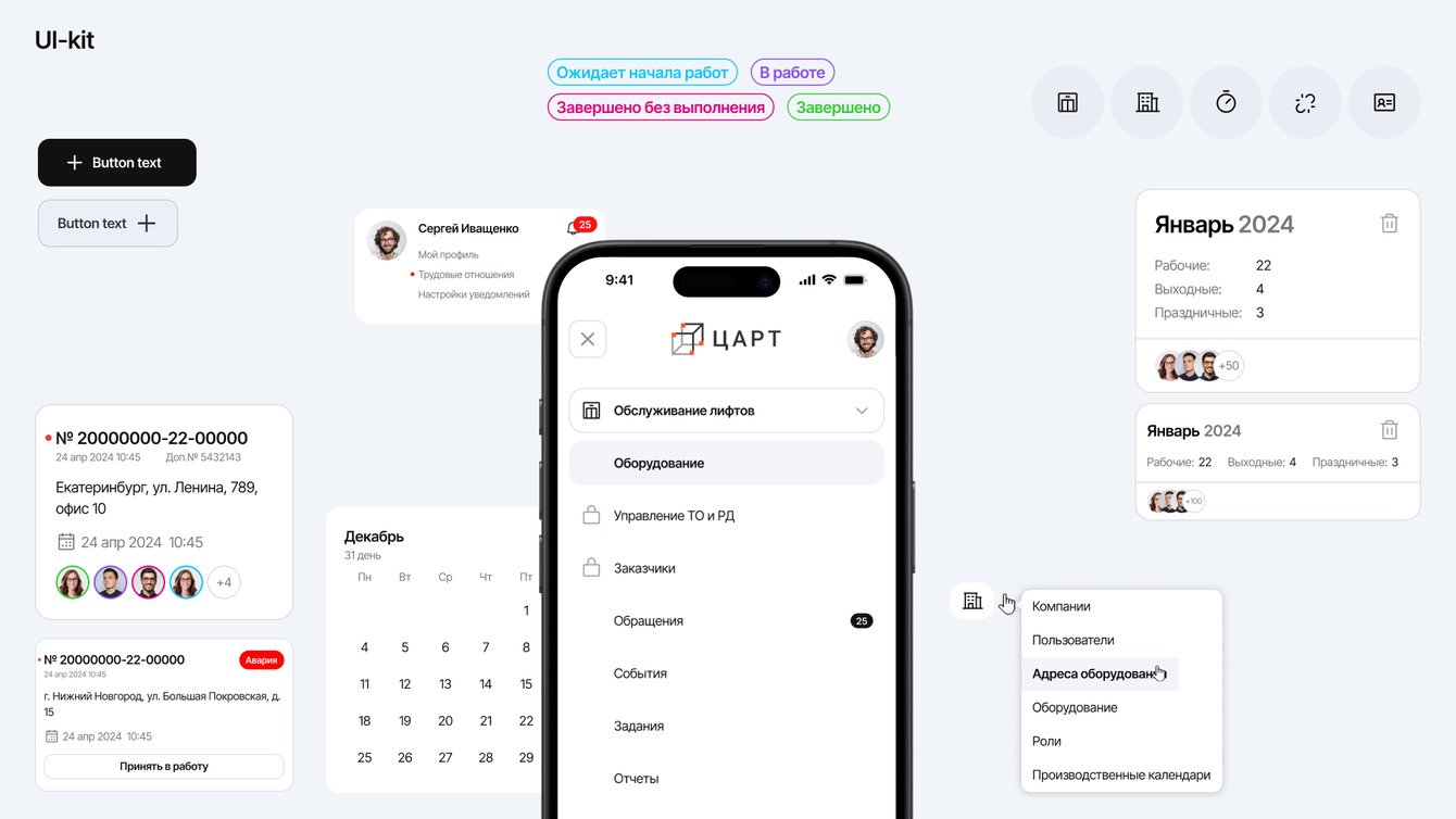 ЦАРТ — это первая в России CRM для обслуживания лифтов, аналогов на рынке нет. Система объединяет множество данных по каждому лифту и другому вертикально-подъемному оборудованию, фиксирует заявки и помогает быстрее реагировать на инциденты.