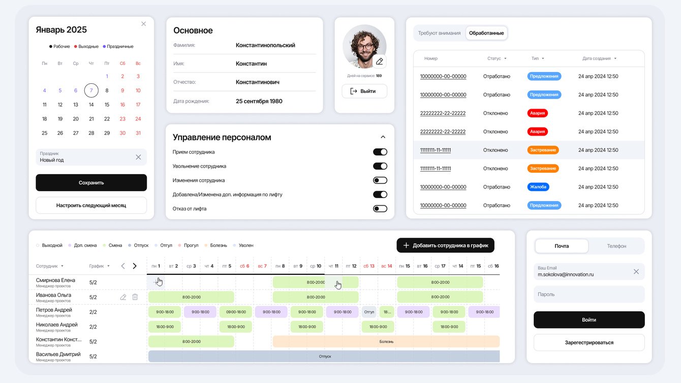 Хотя это первая CRM для лифтовой отрасли, мы учли главную проблему подобных систем в других сферах — их интерфейсы часто перегружены. Из-за этого сотрудникам приходится долго разбираться, и это затормаживает работу.
