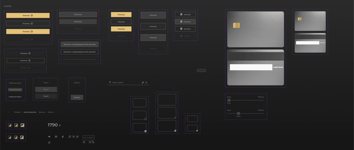 Для реализации этого функционала мы не использовали готовые фреймворки, а разрабатывали функционал и код с нуля. Здесь же мы столкнулись с рядом сложностей, именно в технической реализации, так как данный конструктор полностью уникален для всех сайтов по кастомизации банковских карт. Однако проведя несколько мозговых штурмов, команда смогла придумать стабильно работающее решение, которое удовлетворяет все потребности заказчика.