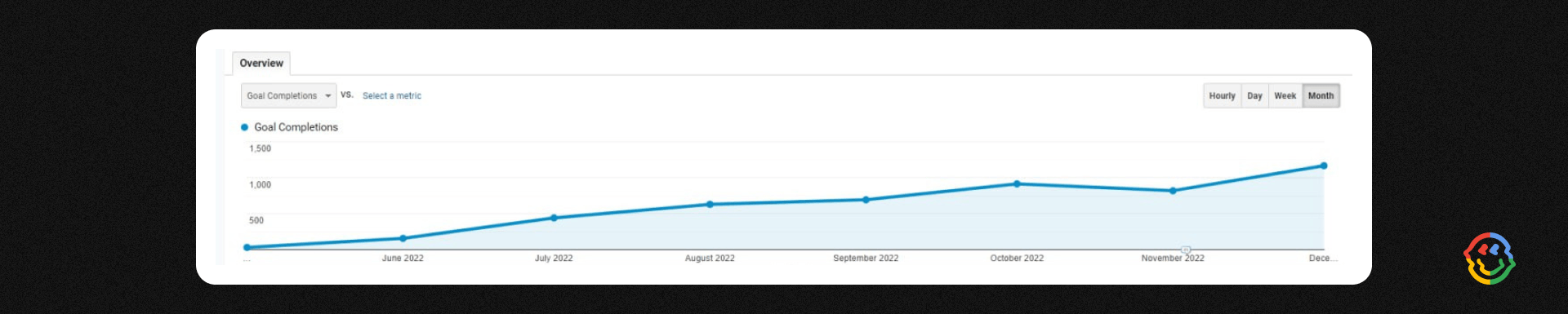 Достижение целей — чуть больше 1000 в месяц. Май 2022 — декабрь 2022