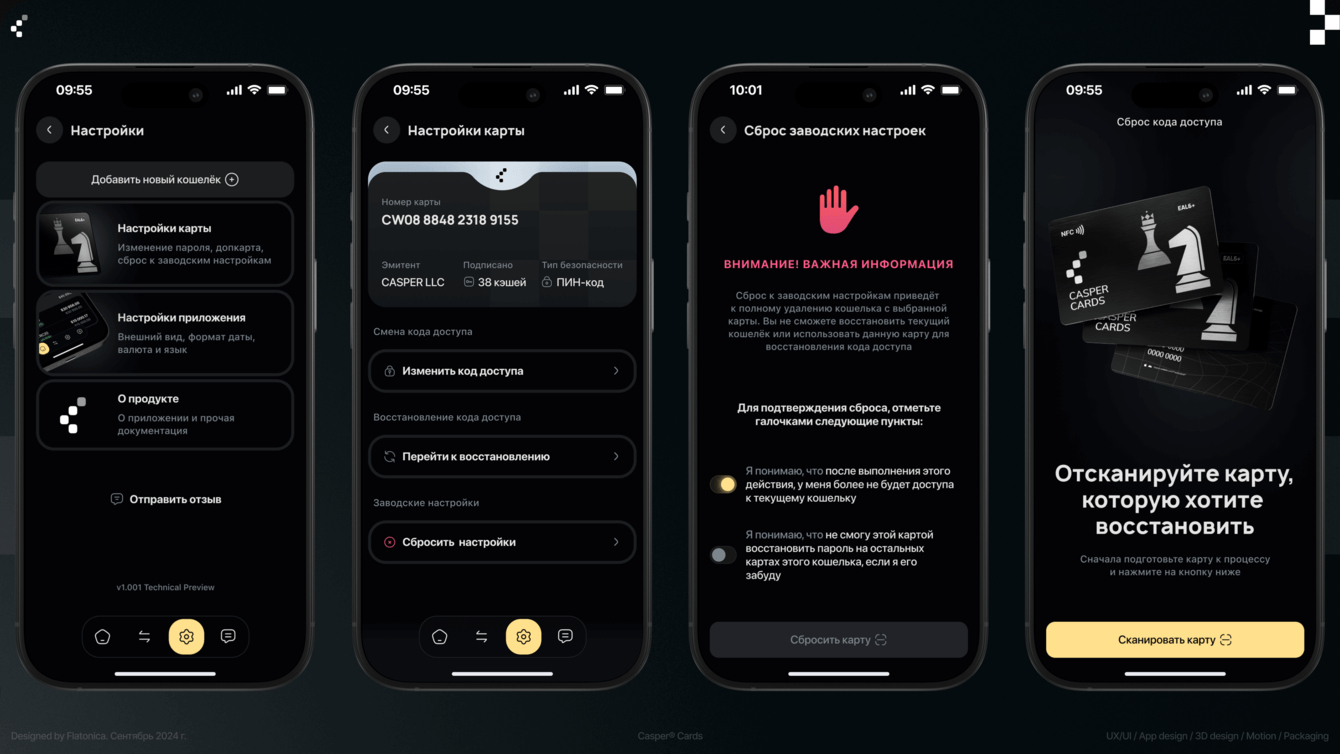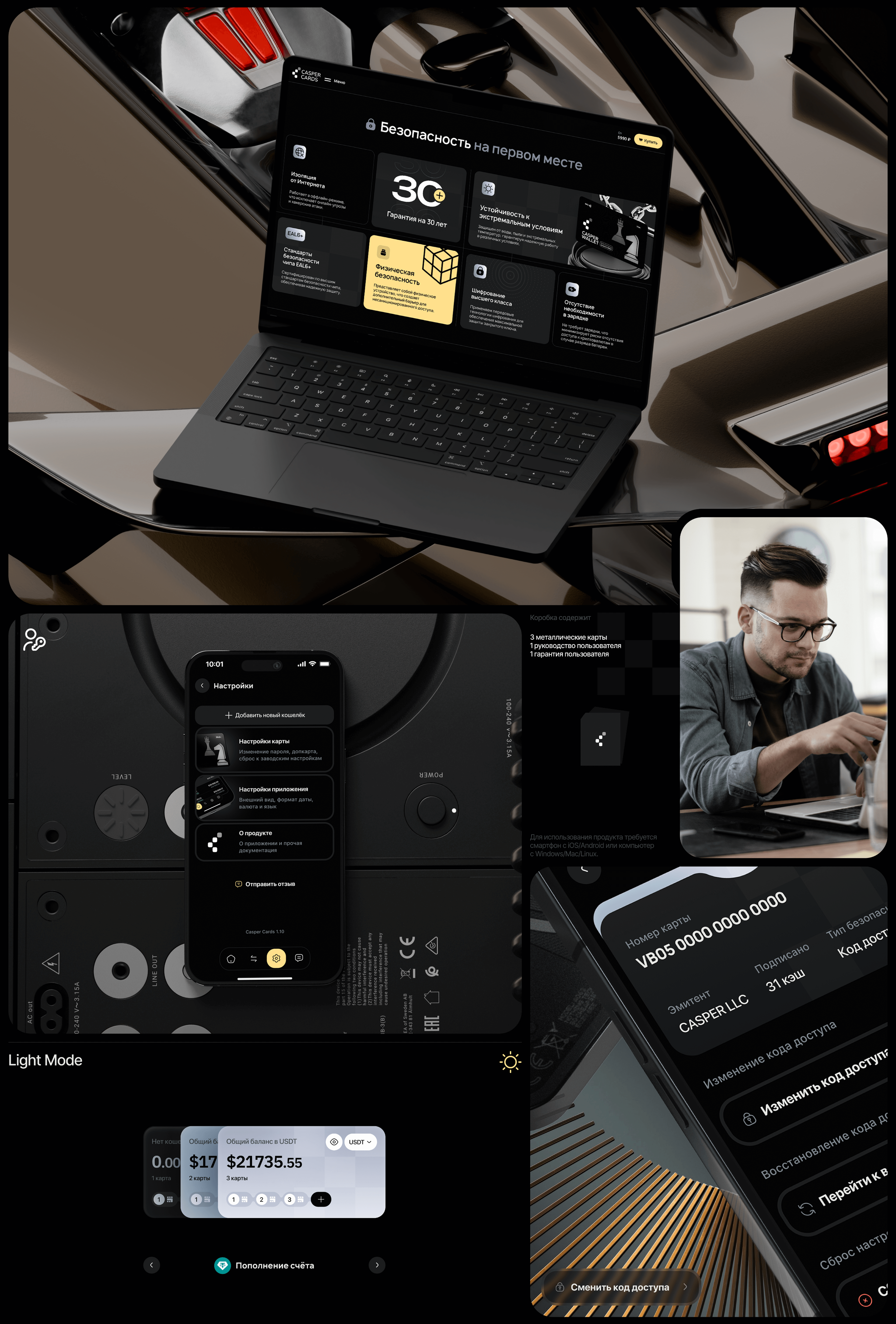 Casper Cards — аппаратный холодный NFC кошелек. Продукт представляет собой физическое устройство в виде карты, что создает дополнительный барьер для несанкционированного доступа.
