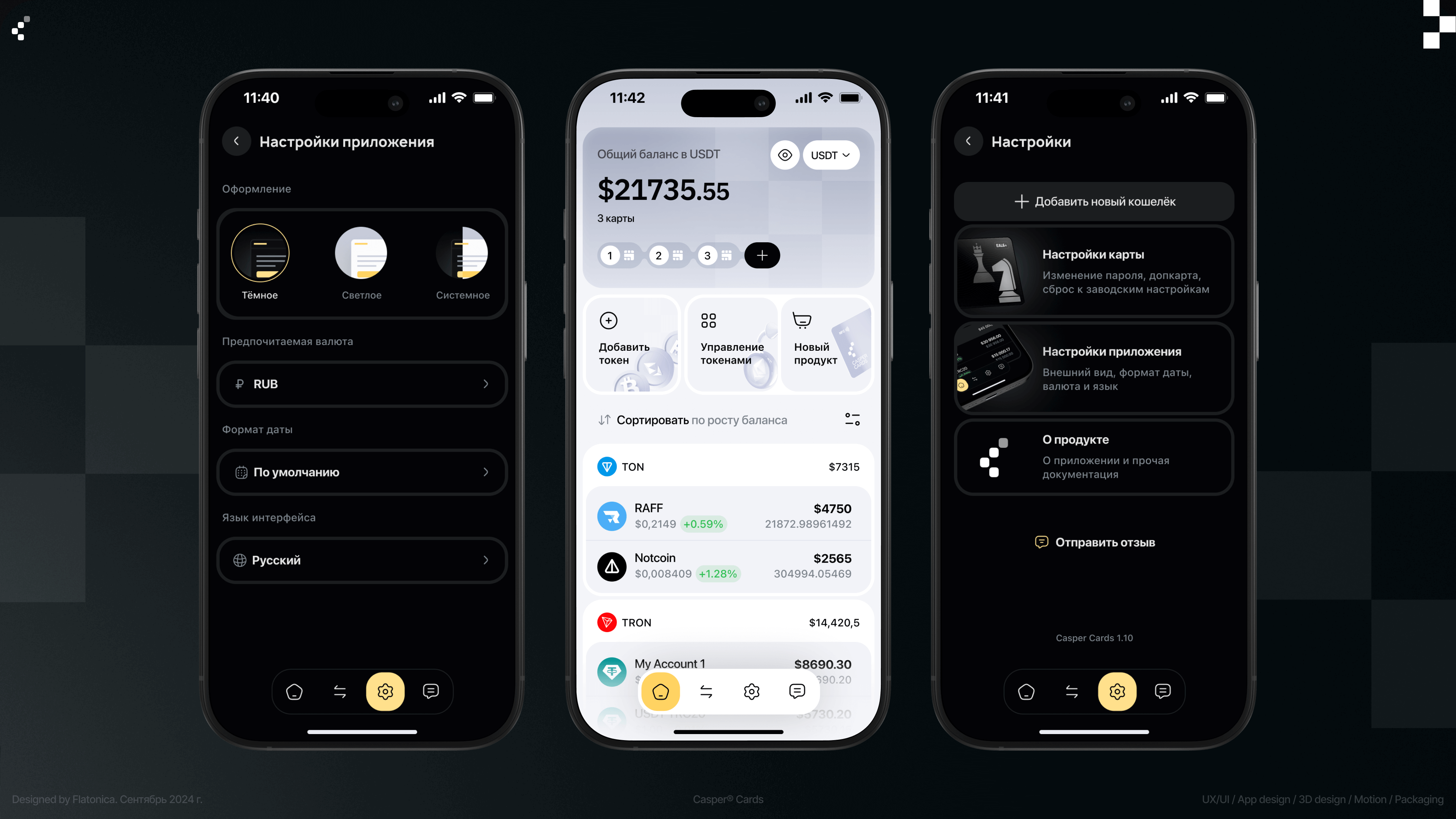 В приложении криптовалютного кошелька Casper Cards можно переключаться с тёмного на светлое оформление. Таким образом можно меньше беспокоиться за зрение и заодно сэкономить заряд аккумулятора.