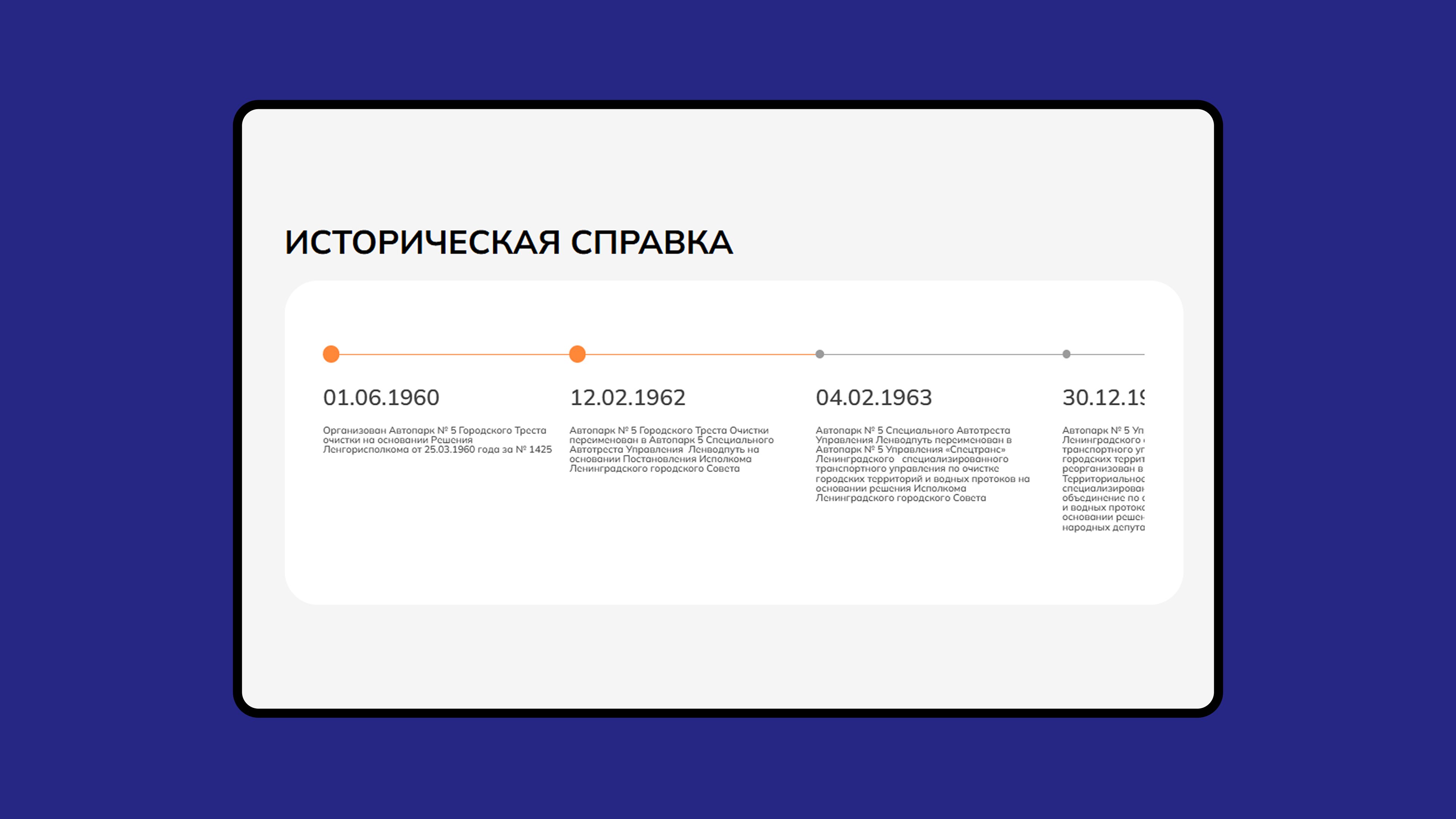 Пообщались с руководством и сотрудниками, чтобы лучше понять технологические процессы и особенности техники. Это помогло собрать нужную информацию для наполнения сайта. Например, мы сделали инфографику, которая наглядно показывает историю развития предприятия за все годы работы.