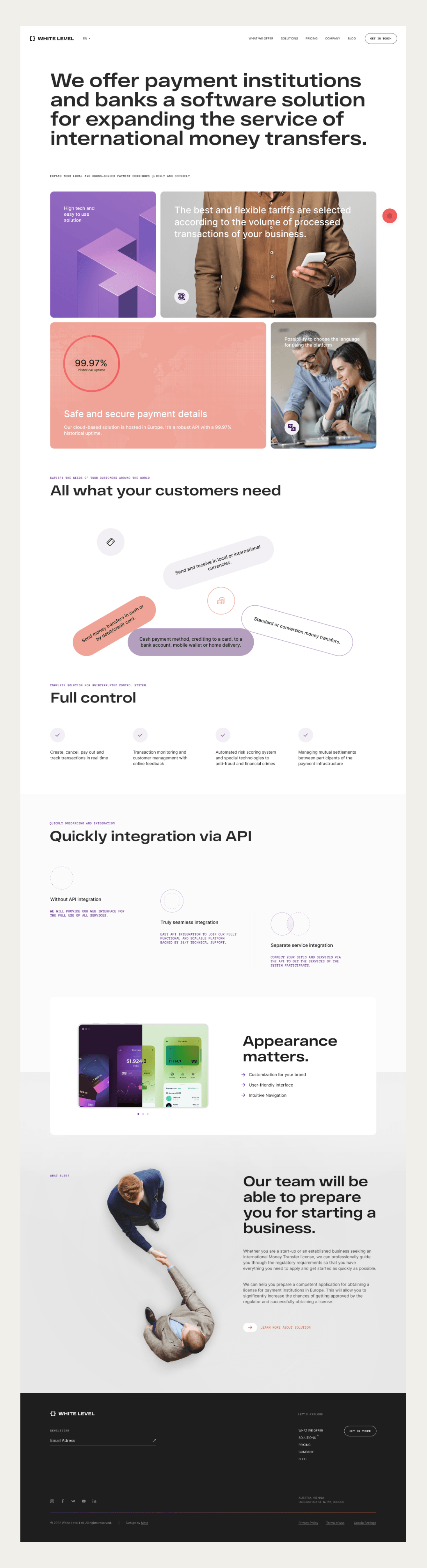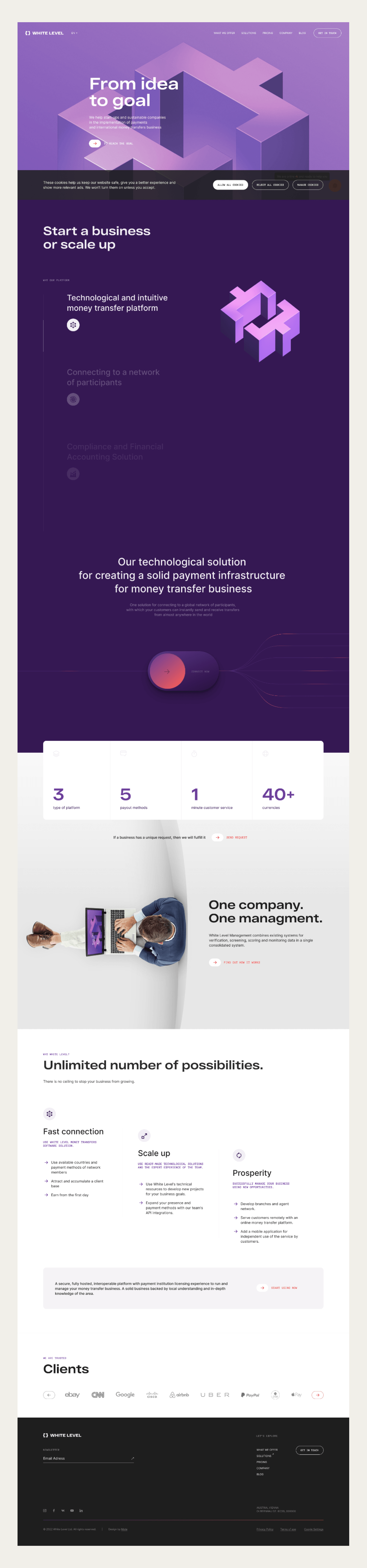 «White Level» – это платформа, которая помогает стартапу или уже устоявшемуся бизнесу создать надежную систему денежных переводов.