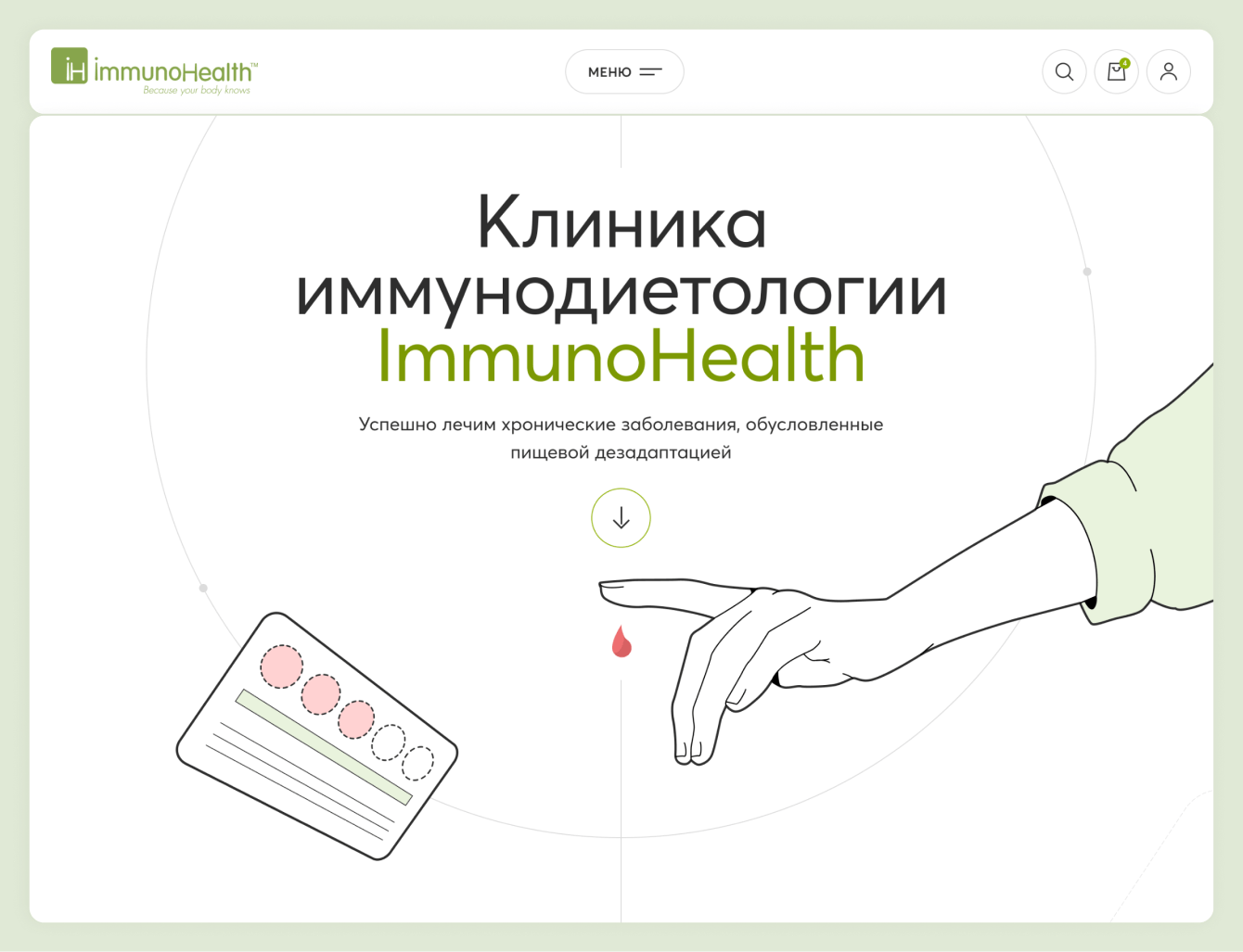 Клиника Immunohealth делает тесты на непереносимость продуктов питания и помогает пациентам подбирать индивидуальные диеты. Задача была сделать современный сайт, которым легко было бы пользоваться.