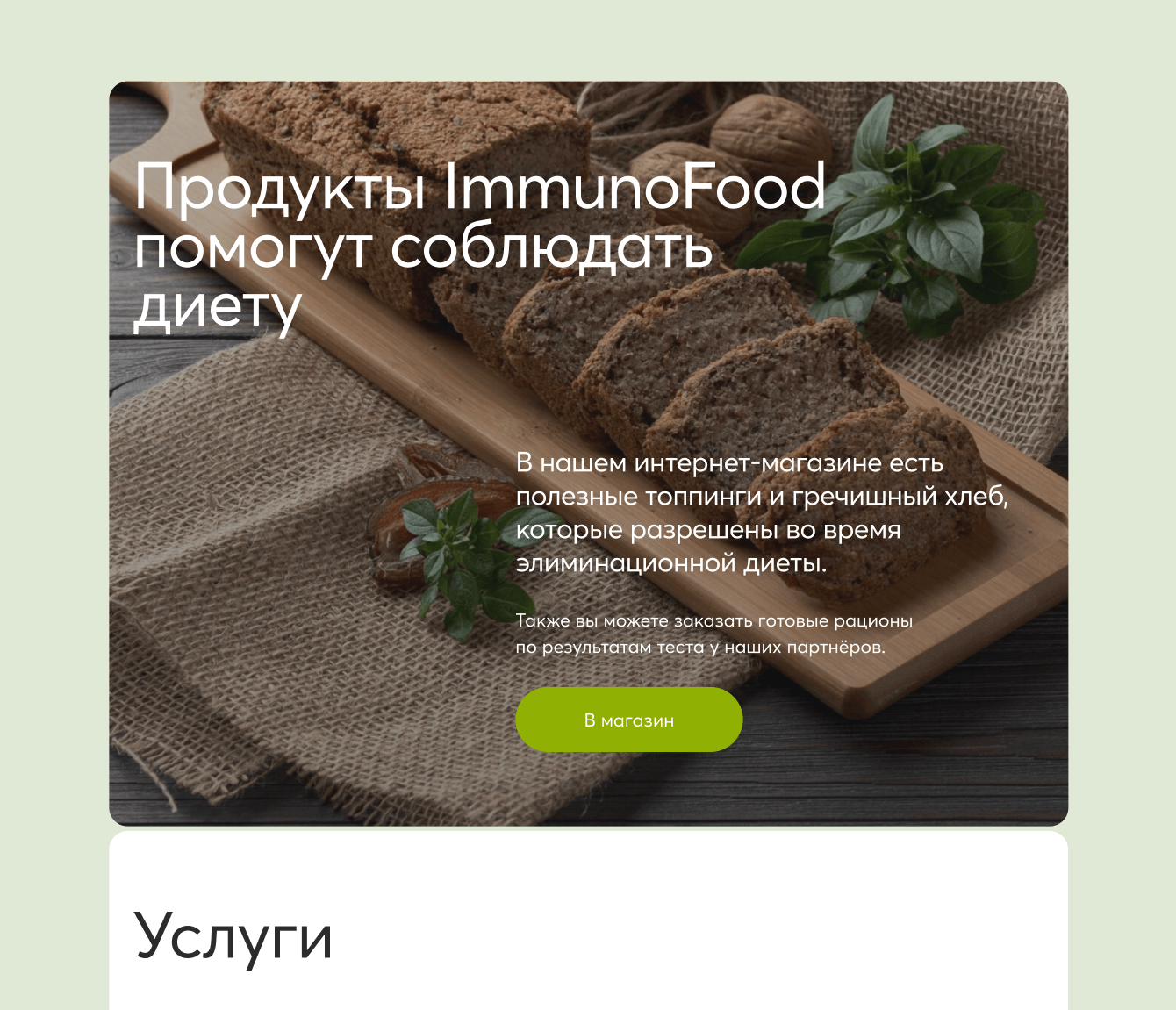 Клиника Immunohealth делает тесты на непереносимость продуктов питания и помогает пациентам подбирать индивидуальные диеты. Задача была сделать современный сайт, которым легко было бы пользоваться.