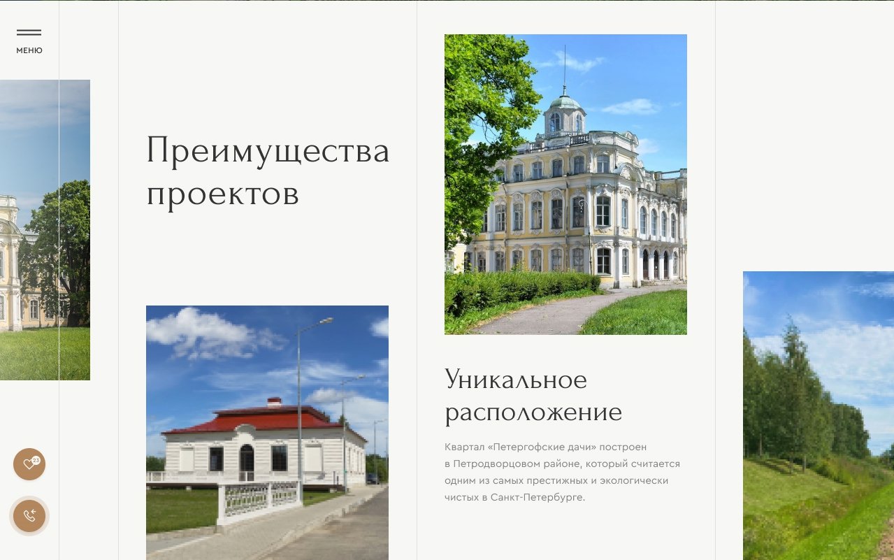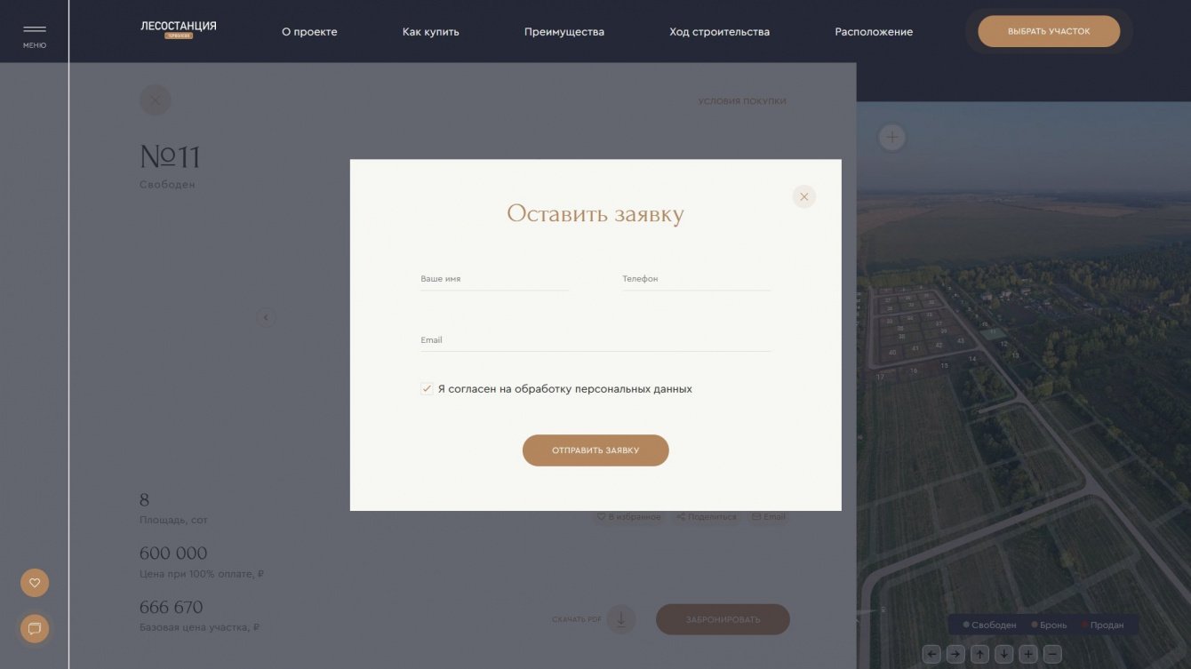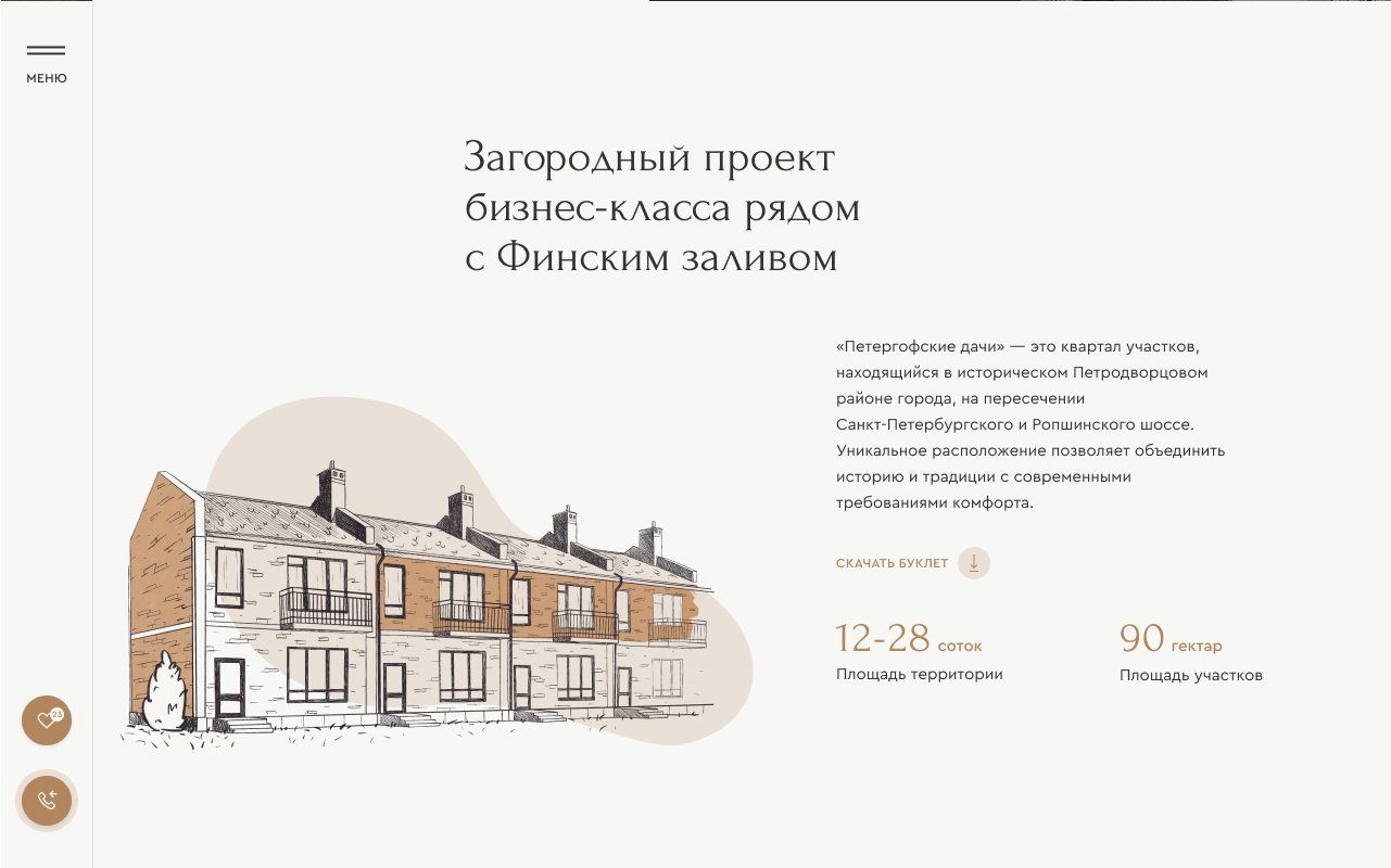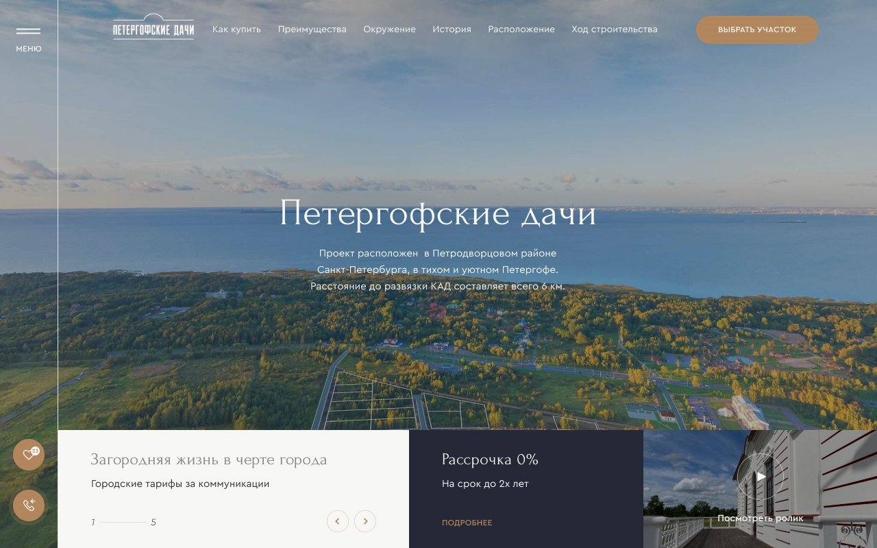 Перед нами стояла задача сделать информационный сайт с выборщиком участков для двух существующих проектов - “Петергофские дачи” и “Участки ИЖС в Петергофе”, но в дальнейшем планировалось запустить ещё два проекта -- Таунхаусы “ТаунГрад” и участки в проекте “Лесостанция”.