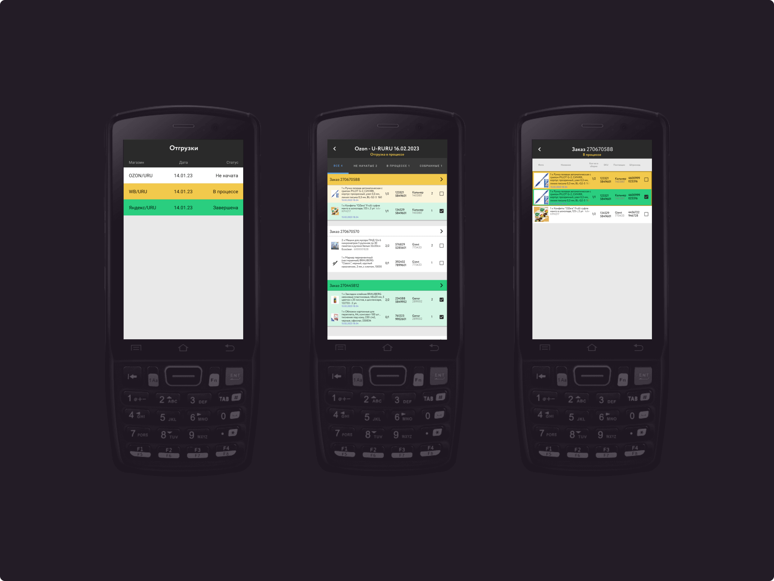 • Спроектировали интерфейс под особенности работы на ТСД (яркая цветовая индикация, крупные элементы).