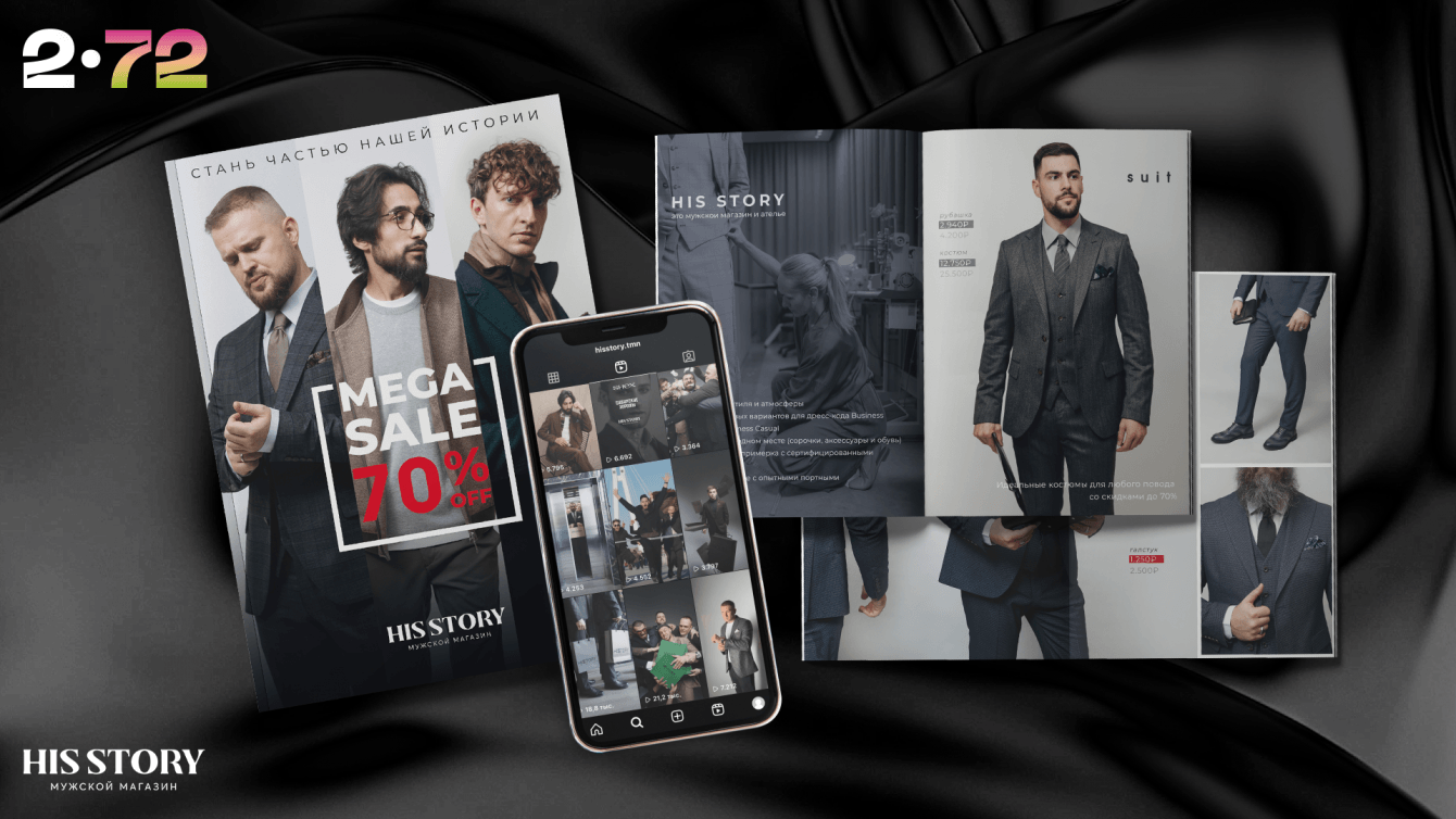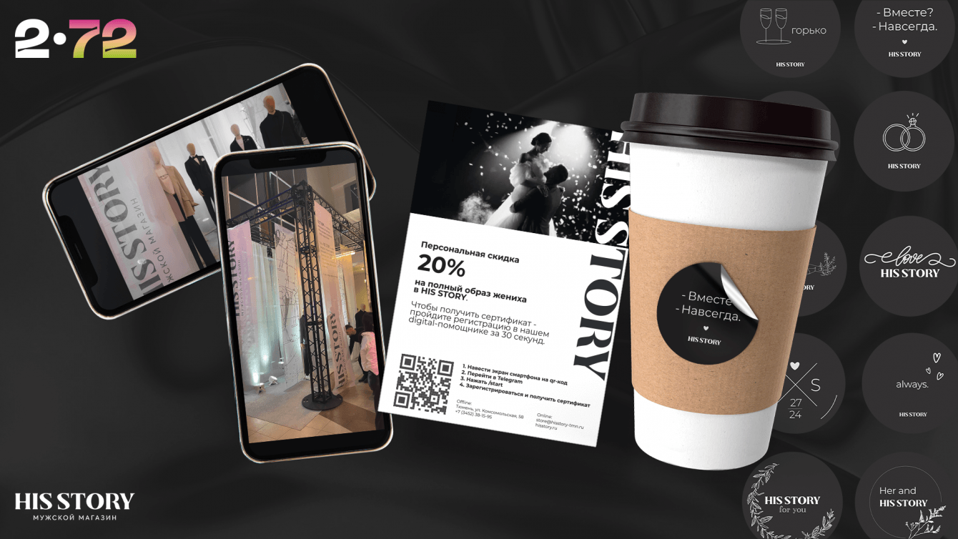 HIS STORY - легендарный в Тюмени магазин мужской одежды и аксессуаров с собственным ателье и коллекциями собственного производства, а также других качественно подобранных брендов, обратились к нам с амбициозной задачей - создать уникальные, классные концепции и организовать 2 спецпроекта - WEDDING ZAVOD в январе и MEGA SALE в конце марта 2024 года.