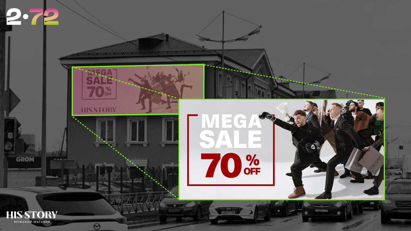 — разместили key visual на 20 разных видеоэкранах по городу;