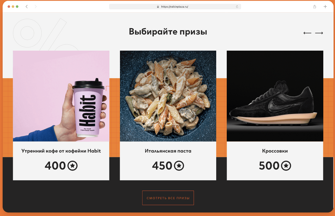 Кнопка с переходом на отдельную страницу, где можно ознакомиться со всеми доступными призами.