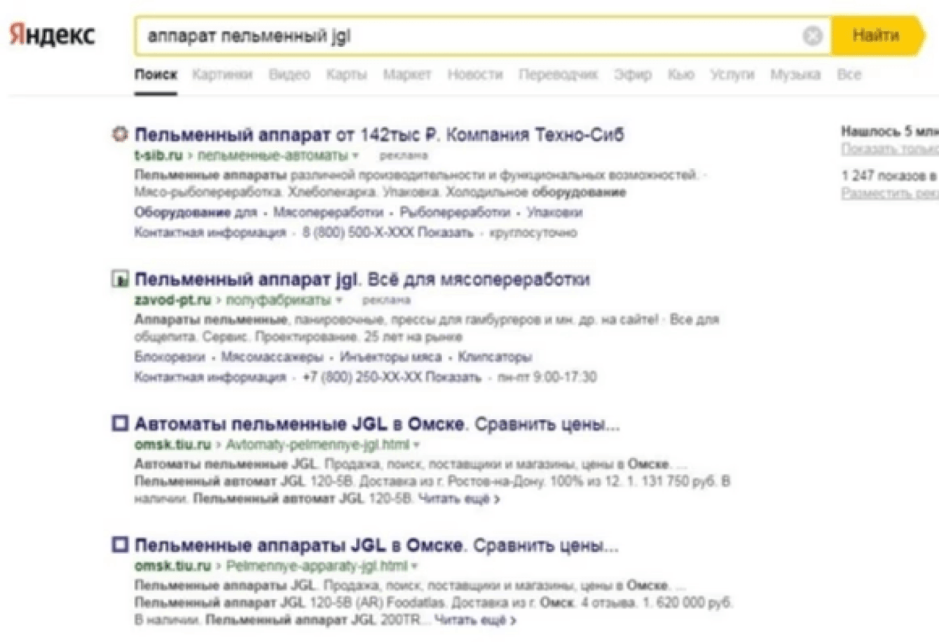Невооруженным взглядом было видно, что рекламу не оптимизировали с момента ее создания. Например, клиент специализируется на промышленном оборудовании для лепки пельменей, а некоторые объявления и бюджет в несколько десятков тысяч рублей были направлены на бытовые домашние пельменницы, которые приводили на сайт нецелевой трафик, сливали бюджет и повышали процент отказов.