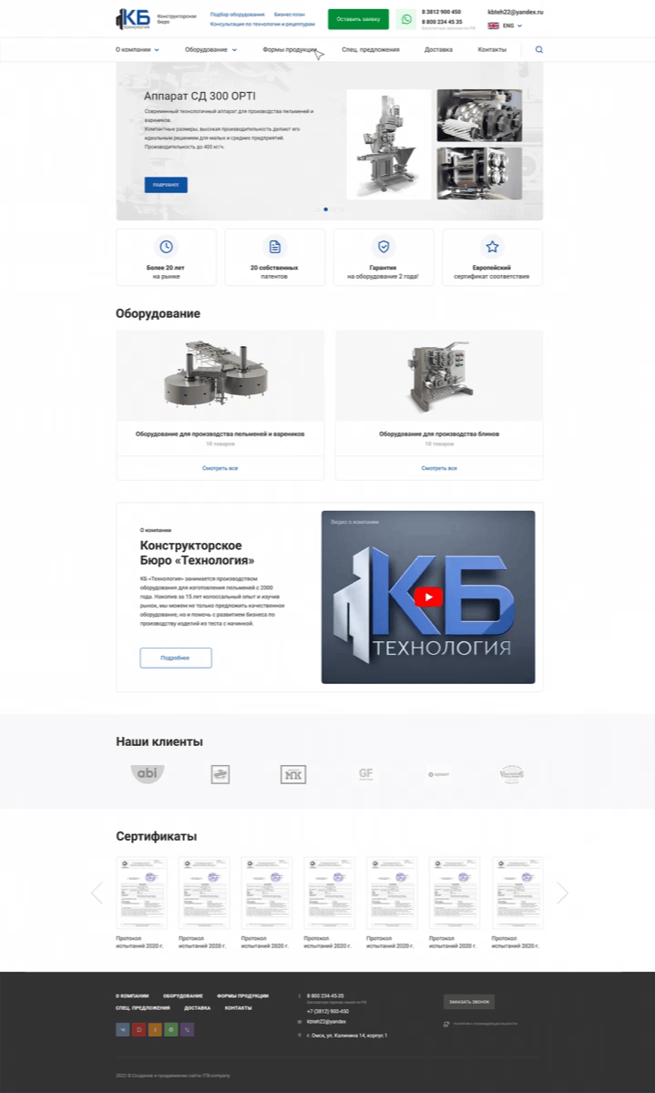 В этом кейсе мы расскажем об опыте работы с компанией КБ “Технология”, которая занимается производством и реализацией оборудования для изготовления изделий из теста с начинкой. Изначально клиент обратился с целью провести аудит запущенных рекламных кампаний и их последующей корректировки. Это всегда очень хорошая практика: периодически проверять работу подрядчиков и следить за качеством ее исполнения. В ходе общения выяснилось, что заказчику необходимо разработать новый сайт. Пока идет длительная разработка и подготовка к seo-продвижению, решили сделать упор на контекст, чтобы получать заявки с целевого трафика.