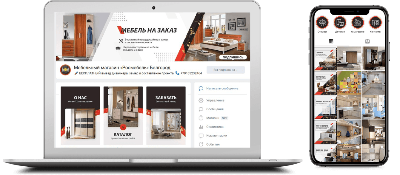 Упаковали группу ВКонтакте, настроили нужные виджеты, создали обложку, заполнили раздел Сюжеты, чтобы потенциальным покупателям было легче ориентироваться в группе. Также наполнили её текстовым и визуальным контентом. Перенесли фото и видео работ клиента, а также отзывы.