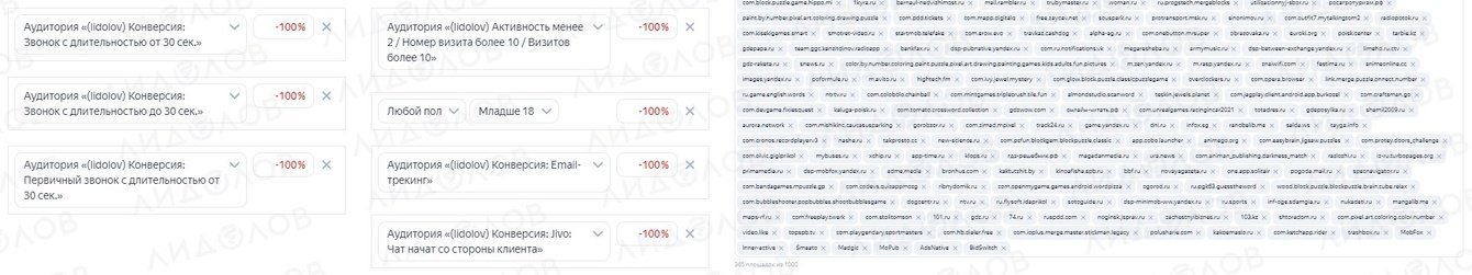 Перед запуском исключили аудиторию по демографической выборке и пользователей, которые ранее оставляли заявку с поисковой рекламы – с ними работают менеджеры :)