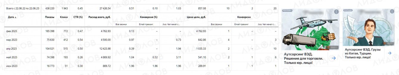 Следующим этапом было принято решение протестировать рекламные кампании заменив в ней семантику ВЭД на международные грузоперевозки.