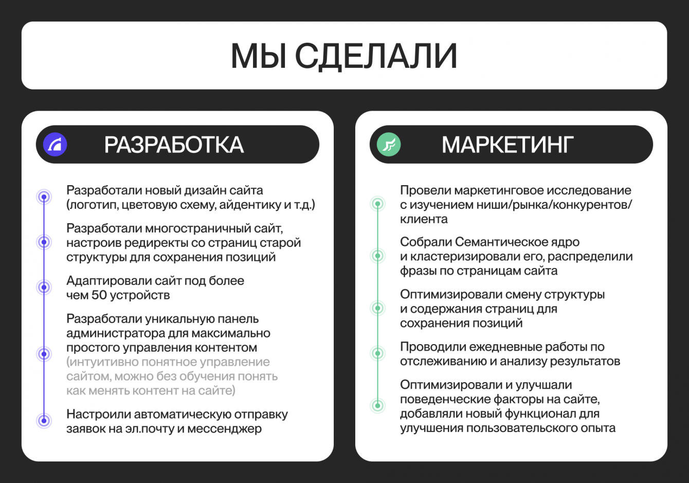 -Разработать новый сайт с учетом его текущей структуры, сохранение и увеличение позиций и посещаемости