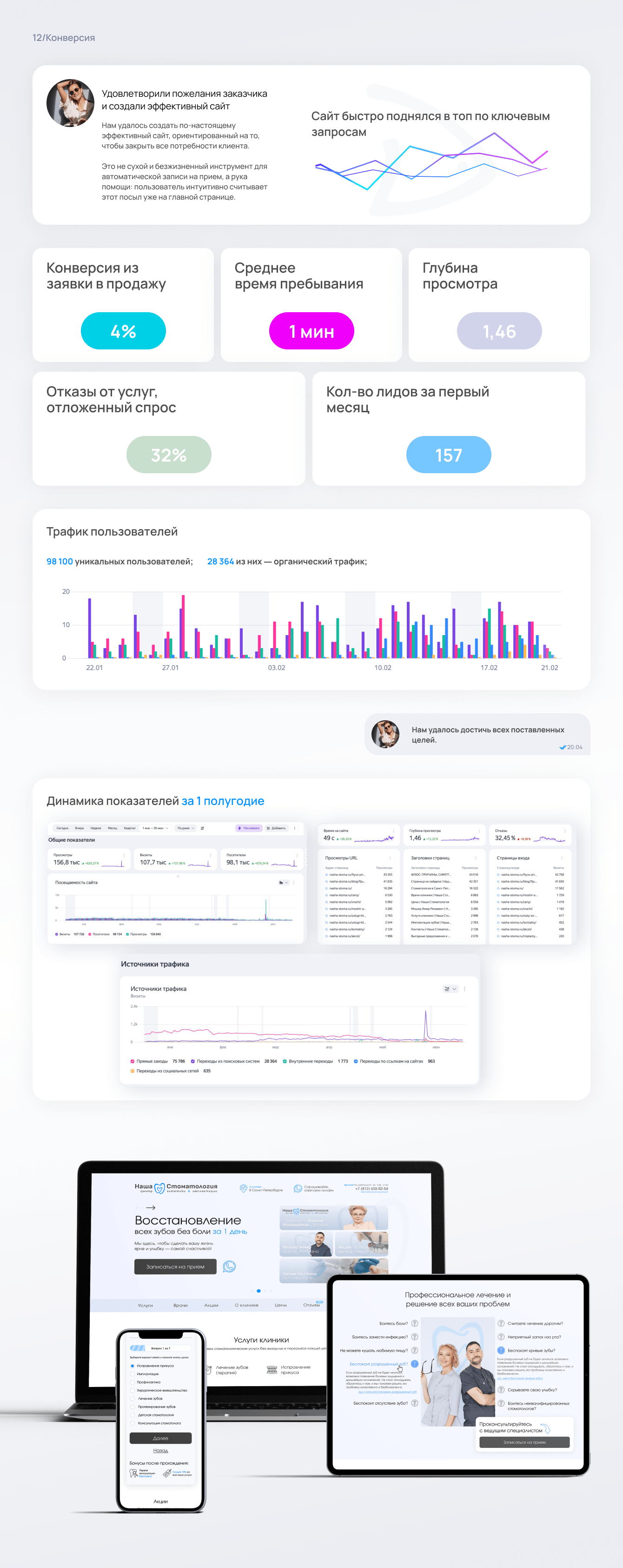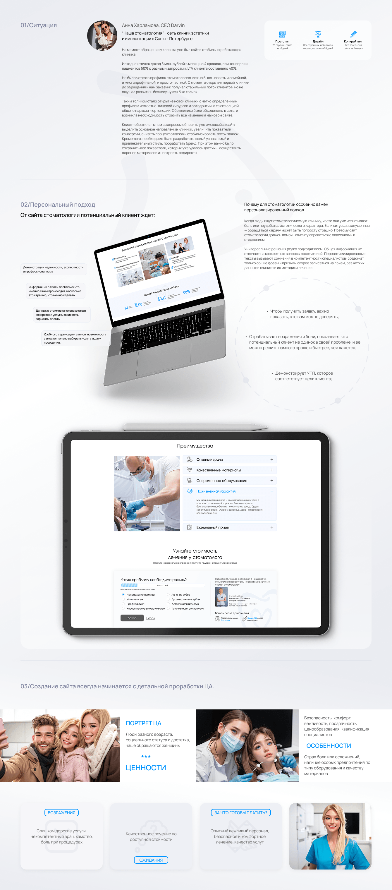 Наша задача заключалась не только в том, чтобы обновить немного устаревший дизайн и увеличить конверсию, но и в том, чтобы создать единый стиль для сети клиник.