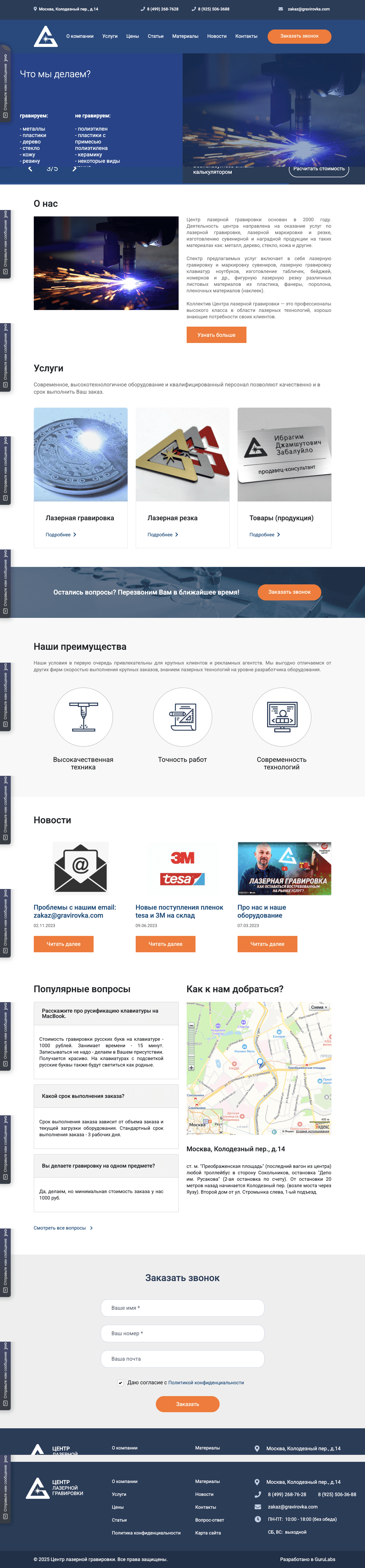На новом корпоративном сайте Центра Лазерной Гравировки представлена линейка основных товаров и услуг, предоставляемых компанией, размещены видео- и фотоматериалы процесса гравировки. На сайте размещено большое количество тематических статей и новостей, сделана форма обратной связи.