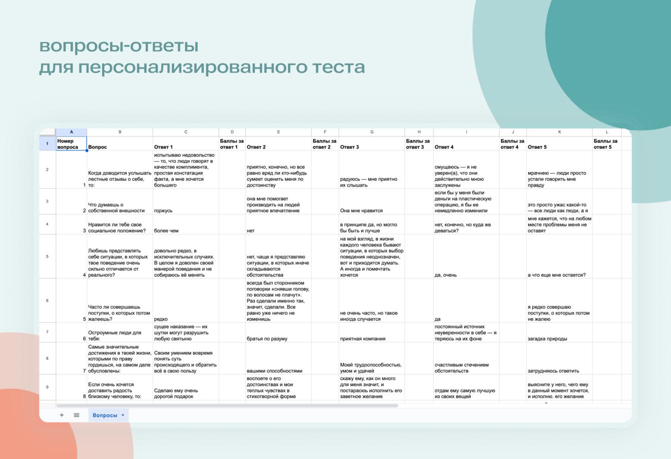 При запуске бота тестировали разные механики взаимодействия. Изначально ответы подгружались из Google-таблицы, но это приводило к задержкам, из-за которых пользователи теряли интерес и выходили.